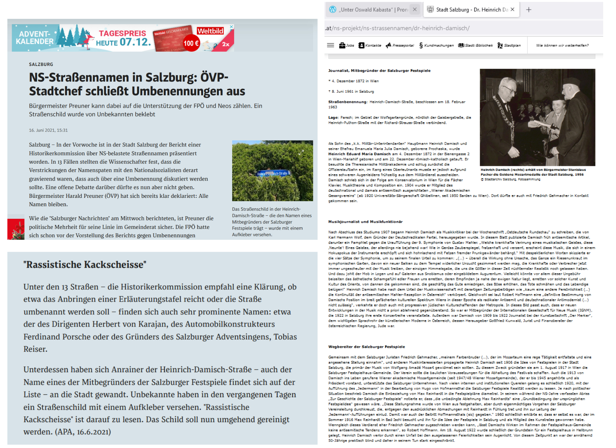 Eine offene Debatte darüber dürfte es nun aber nicht geben. Bürgermeister Harald Preuner (ÖVP) hat sich bereits klar deklariert: Alle Namen bleiben. Wie die „Salzburger Nachrichten“ am Mittwoch berichteten, ist Preuner die politische Mehrheit für seine Linie im Gemeinderat sicher. Die FPÖ hatte sich schon vor der Vorstellung des Berichts gegen Umbenennungen ausgesprochen, die Neos am Tag der Präsentation: „Nur die Anbringung von Zusatztafeln kann für die notwendige Aufklärung sorgen.