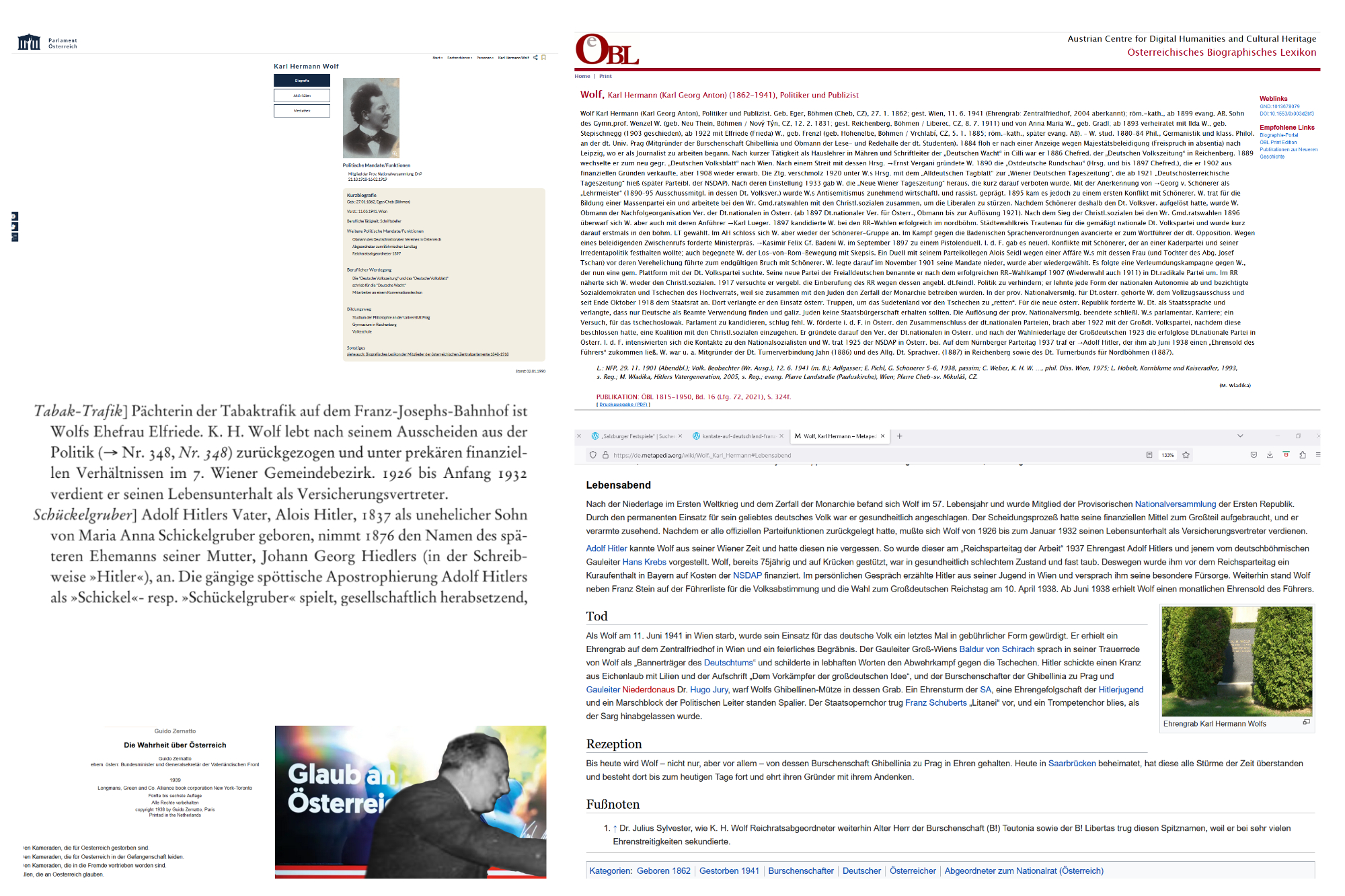 Einer dieser Leute, die das mit Begeisterung aufnahmen, was man in der »Ostdeutschen Rundschau« niederschrieb, war Adolf Hitler. Von der Welt Schönerers aus hat er die Welt des Nationalsozialismus gestaltet. Die alldeutsche Bewegung war ein Strohfeuer. Ihre Führer überlebten die Bewegung und sich selbst um viele Jahre. Welches Gefühl aber muss den Tabaktrafikanten Karl Hermann Wolf beseelt haben, als er den neuen Siegfried – Adolf Hitler – die Ideale seiner Jugend zur Herrschaft über das ganze deutsche Volk erheben sah!