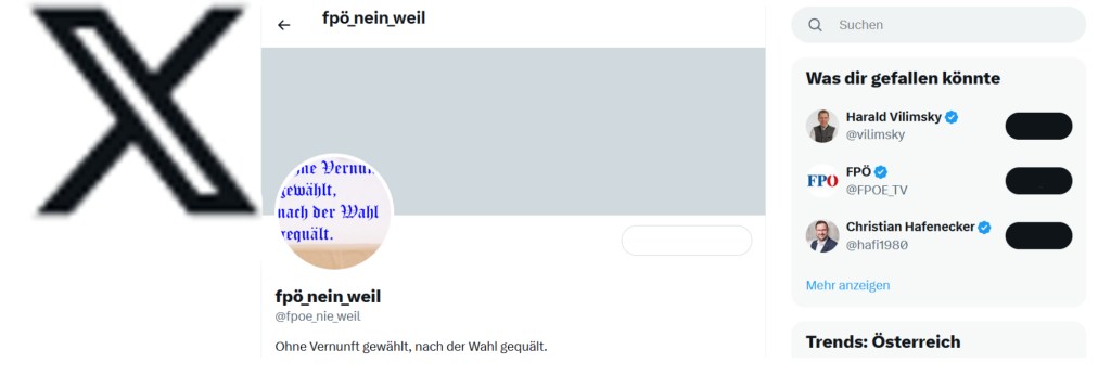 „Was dir gefallen könnte“, schlägt auf der Konzernplattform X, um diese Mär mit einem Beispiel von diesem Tag, 25. Februar 2024, zu veranschaulichen, dessen Algorithmus „Christian Hafenecker, Harald Vilimsky, FPÖ-TV“ vor,