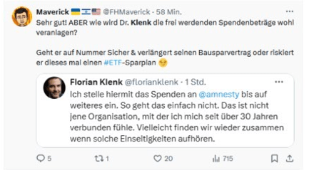 Solange Florian Klenk keine Fakten für die Richtigkeit seiner Verbreitungen vorlegt, sollte Amnesty International von sich aus auf seine Spenden verzichten, denn hehr zu spenden und gleichzeitig solches zu verbreiten schließt sich aus.