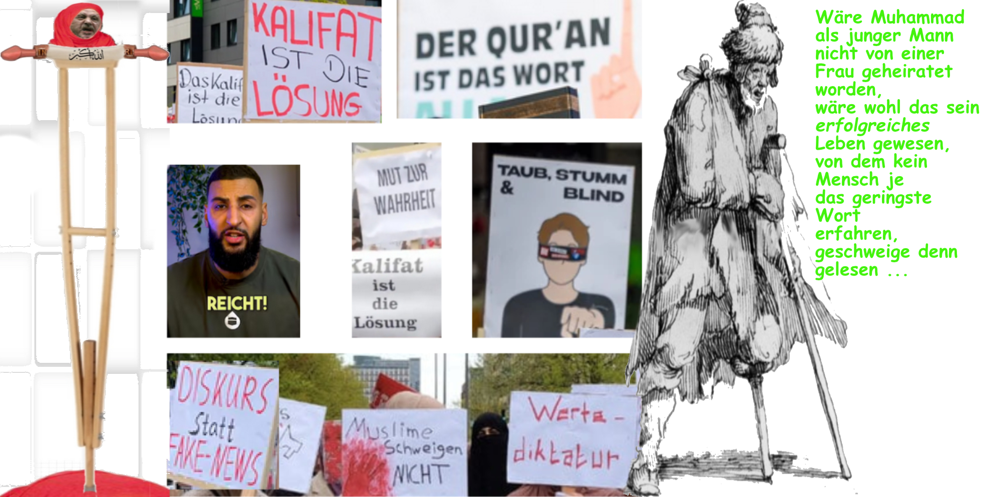 Wenn Menschen für ihre Organisierten Glauben demonstrieren, und es vor allem Männer sind, die für ihren Organisierten Glauben auf die Straße gehen, Frauen weit abseits von ihnen zu stehen haben, mit Sprüchen wie „Schluß mit Wertediktatur“, dann kann ihnen, vor allem den Männern, nur uneingeschränkt zugestimmt werden, es muß endlich Schluß sein mit ihren vor allem in ihren Familienverbänden verbissen diktierten Werten, denen sie anhängen, endlich Schluß sein mit ihrer glaubensgetriebenen Diktatur, die Männer in ihren Familien gegen ihre eigenen Angehörigen ausüben, es muß endlich Schluß sein, mit ihren glaubensgetriebenen Werten, die sie, vor allem die Männer, vor allem gegen Frauen diktatorisch einsetzen, vor allem gegen Frauen, die ihre Mütter, ihre Schwestern, ihre Tanten, ihre Großmütter, ihre Freundinnen, ihre Mitschülerinnen, ihre Arbeitskolleginnen usw., aber auch gegen Frauen, die sie nicht kennen und dennoch meinen, diesen ihnen gänzlich unbekannten Frauen ihre glaubensverblendeten Werte diktieren zu …