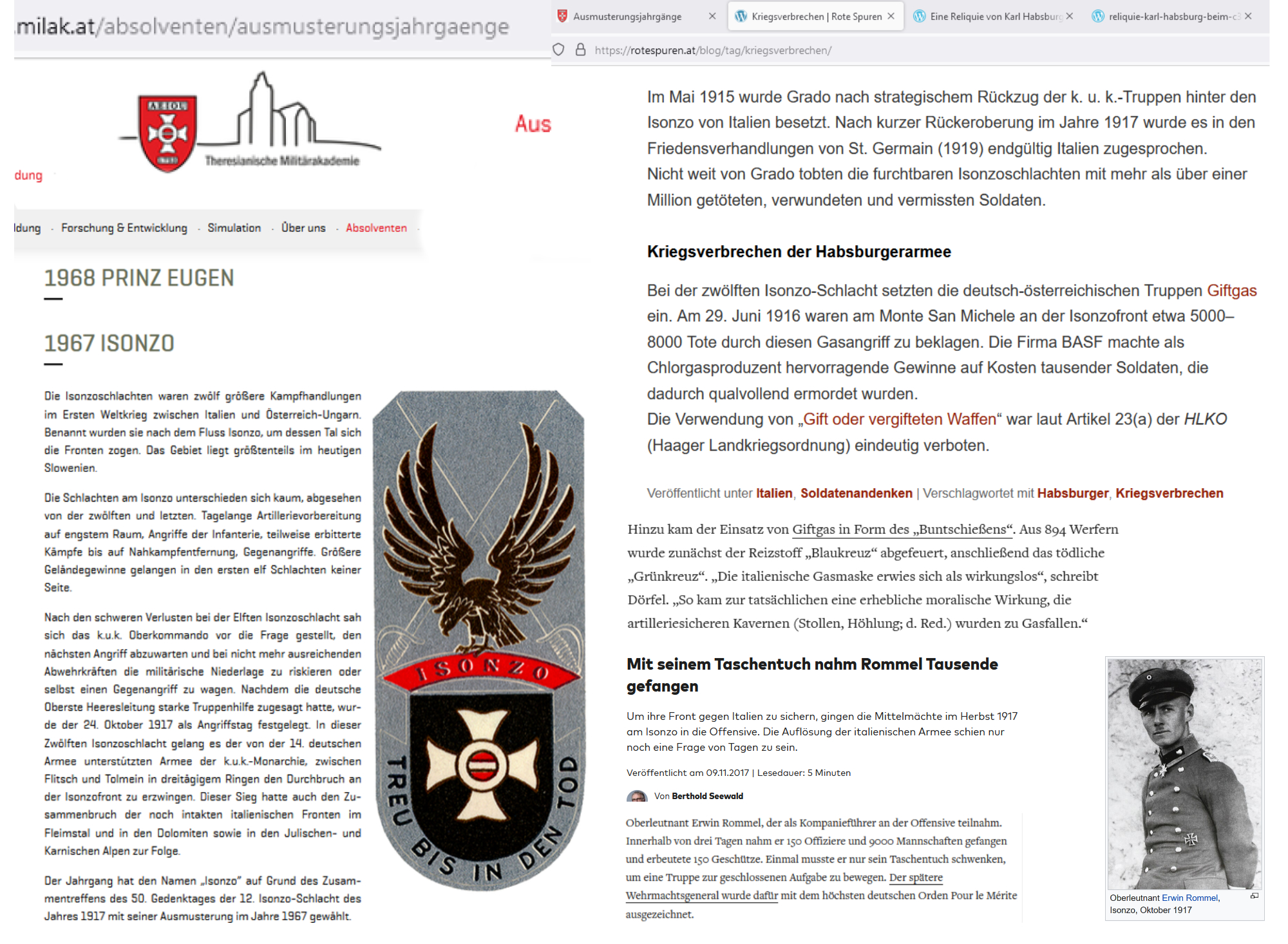 Mit so vielen Wörtern erinnert die Theresianische Militärakademie an die „12. Isonzo-Schlacht“, ist noch 57 Jahre später auf der Website der MilAk zu lesen. Was in dieser Schlacht auch zum Einsatz kam,
