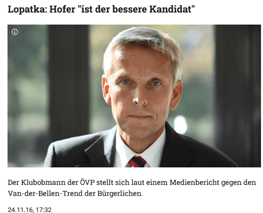 Menschgemäß ist Hofer kein besserer Kandidat, auch nicht im Vergleich mit Reinhold Lopatka, aber es stehen Wahlen zum Europäischen Parlament bevor, und Reinhold Lopatka ist ein Kandidat, zu dem sonst nichts einfällt, außer, daß er befand, Hofer, der dann die Wahl verlor, sei …