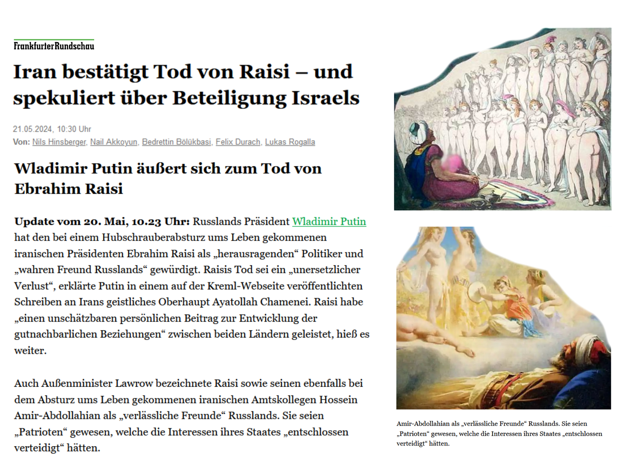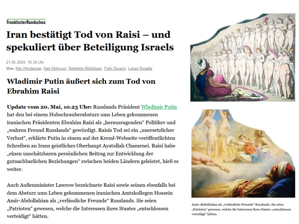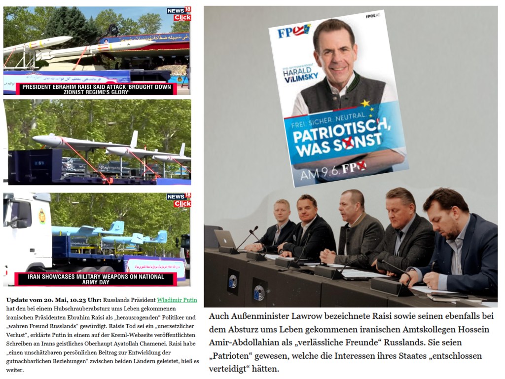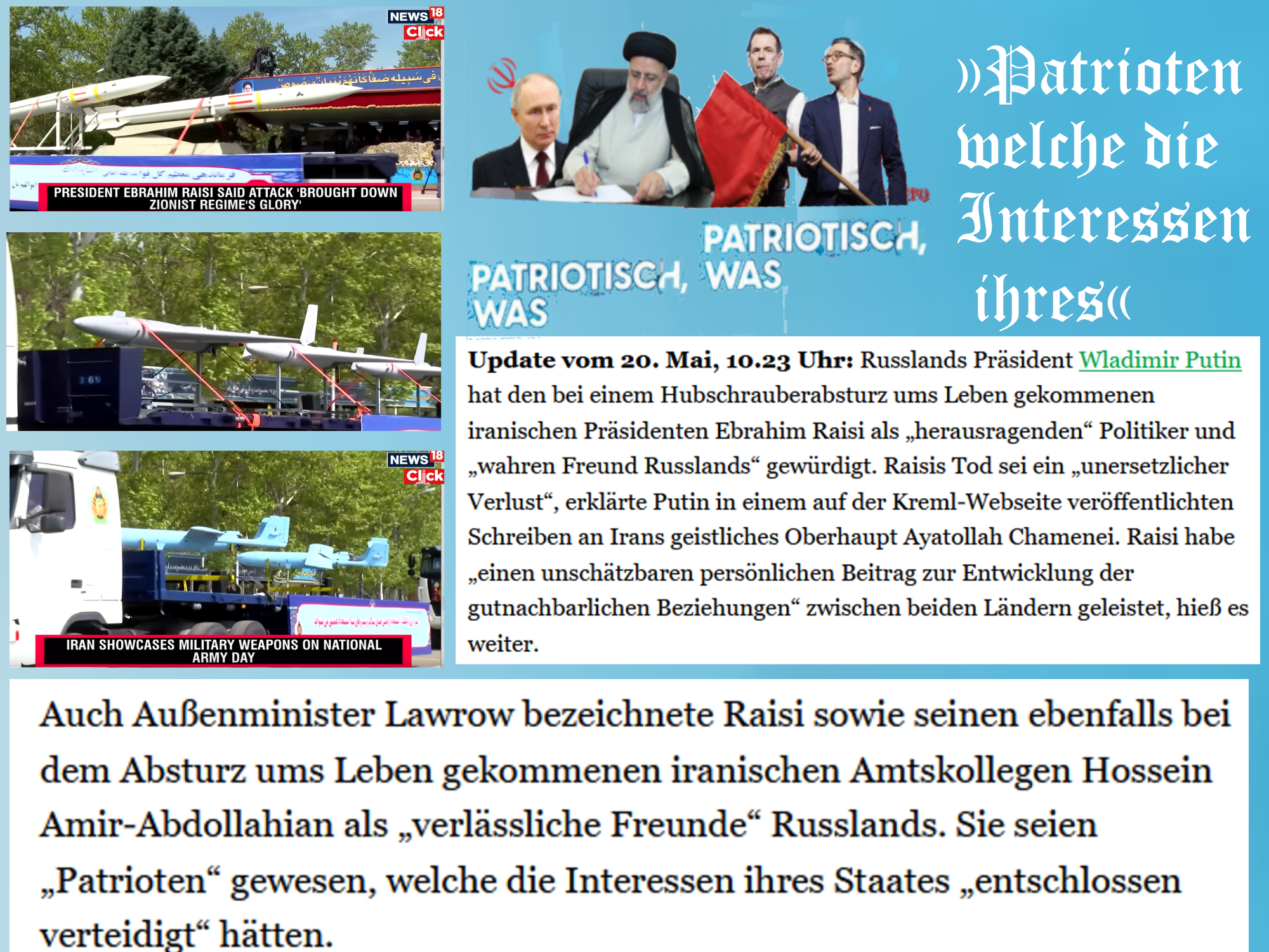 Wie hat doch der iranische Präsident, von dem auf Erden nun nur ein zerstörter Hubschrauber und ein toter Körper zurückblieb, aber Gott in seiner Wundertätigkeit flog ihn im Hubschrauber heim, ins Reich, ins Paradies, die Wünsche aus Österreich zu Herzen genommen,