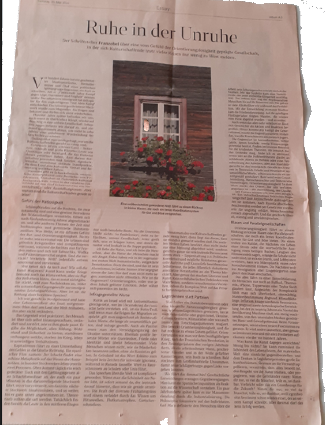 Beim Lesen „Ruhe in der Unruhe“ in der Wochenendausgabe der Tageszeitung des österreichischen Medienstandards an diesem letzten Sonntag im Mai 2024 setzte rasch eine Ablenkung ein, ein Abschweifen zu einer Erinnerung an einen Abend vor Jahren am Radetzkyplatz, als von Franzobel, so hell erleuchtet war der Schanigarten, eine Falte gesehen wurde … nun beim Lesen seines Essays in Erinnerung an diesen Abend stellt sich von selbst die Frage ein, die menschgemäß sonst gestellt wird, wenn ein Mensch beispielsweise der Literatur gestorben ist, was wird von diesem Menschen bleiben, aber es eine Frage, die durchaus und vielleicht klugerweise schon zu Lebzeiten eines sogenannten schöpferischen Menschen gestellt werden sollte, und Franzobel mit seinem Essay eignet sich dafür hervorragend, damit zu beginnen, zu fragen, bei Lebzeiten von Franzobel zu fragen, was wird von ihm bleiben —
