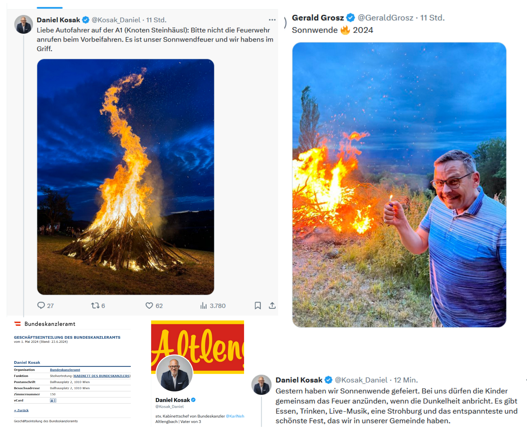 Und wer sonst noch in diesem Strohburgenland der Tradition der Sonnwend‘ recht stattliche Scheiterhaufen verbrennt, die schneller abgebrannt als errichtet, seit …