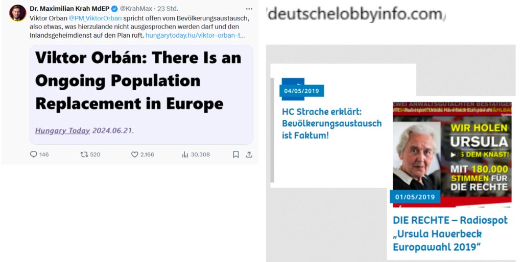 „Viktor Orbán: There is an Ongoing Population Replacement in Europe – Hungary Today“, von Maximilian Krah nachgekrächzt, rechtsextremes Gekrächze wird Mainstream, so könnte eine Überschrift eines Beitrages, von der ARD vor etwas mehr als zwei Jahren veröffentlicht,