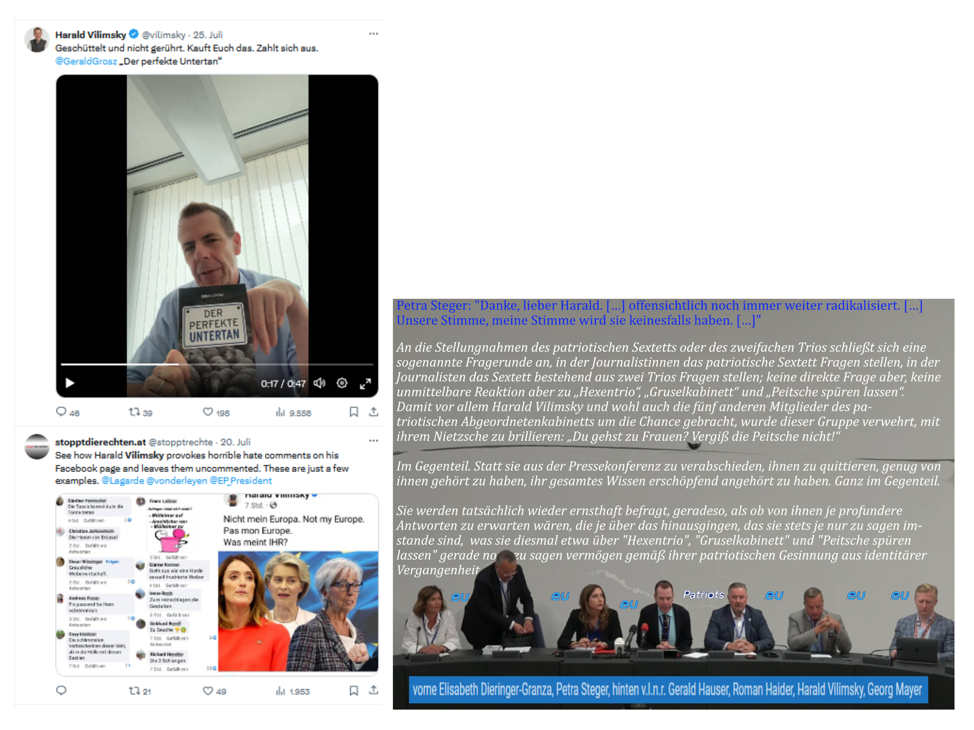 Hans Rauscher hätte das als Rezension der Zungenpeitschennummer gar nicht mehr fragen müssen: „Was tun mit Vilimsky?“ Und auch seine Antwort hätte er nicht mehr schreiben müssen: „Frauenhasser mit Kalkül gehören konsequent bekämpft – nicht nur von den Frauensprecherinnen anderer Parteien.“ Am 19. Juli 2024. Denn. Auf die Frage wurde ja im Angesicht der Zungenpeitsche von den Journalistinnen unmißverständlich reagiert. Die Antwort gaben ja im Angesicht der Zungenpeitsche eindrucksvoll die Journalisten.