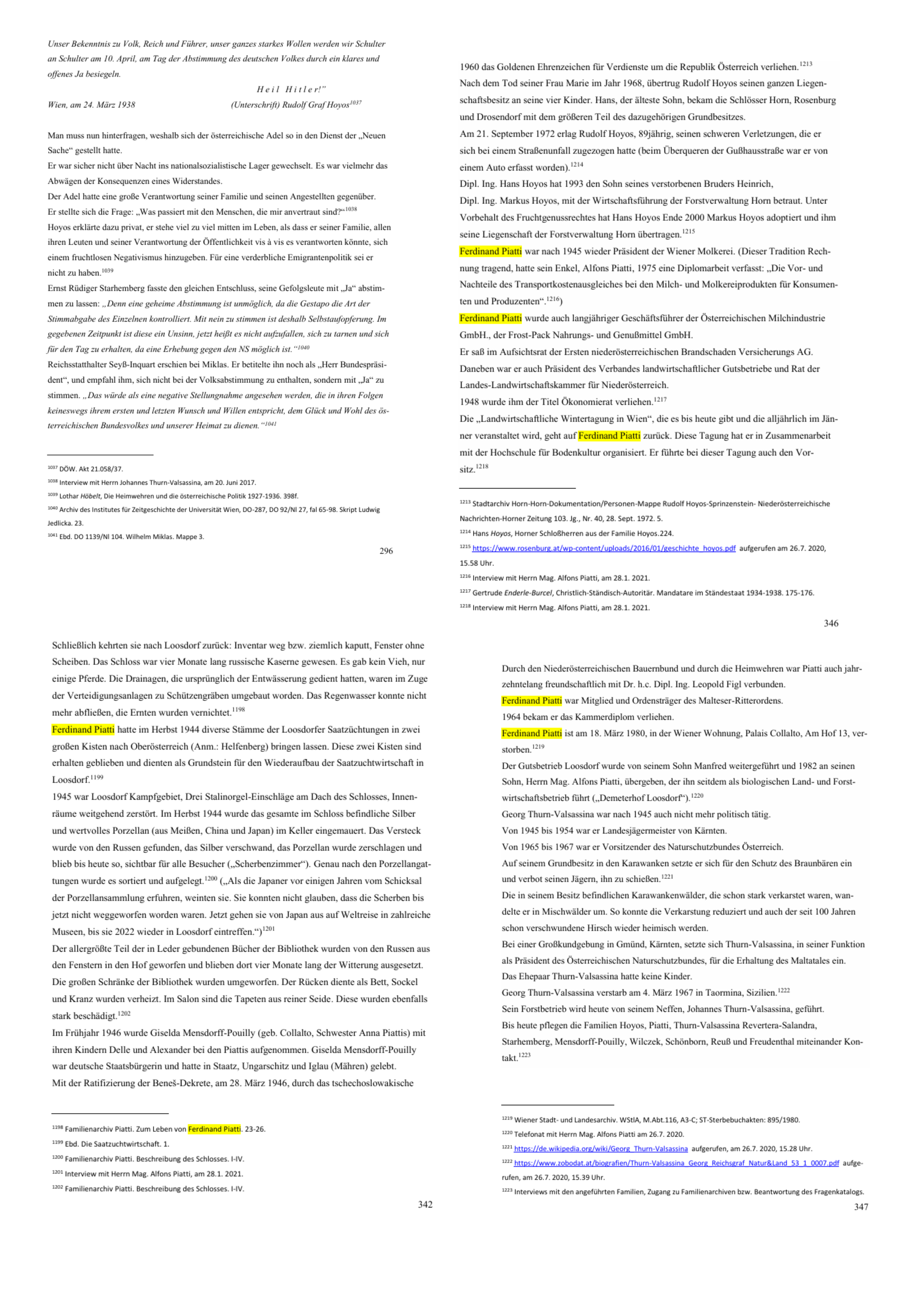 Damit auch das nicht vergessen wird, von dem in dieser hohenloheischen Idylle nicht erzählt wird, soll es hier erzählt sein, mit Zitaten aus „Österreichs Adel: Heimwehren, Widerstand gegen das NS-Regime Rudolf Graf Hoyos, Ferdinand Graf Piatti, Georg Graf Thurn-Valsassina“ von Manfred Stadler: