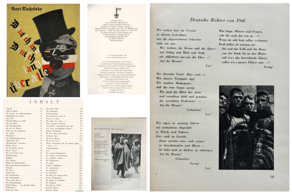 Und hier stehe das Bekenntnis, in das dieses Buch münden soll: Ja, wir lieben dieses Land. Und nun will ich euch mal etwas sagen: Es ist ja nicht wahr, dass jene, die sich ›national‹ nennen und nichts sind als bürgerlich-militaristisch, dieses Land und seine Sprache für sich gepachtet haben. Weder der Regierungsvertreter im Gehrock, noch der Oberstudienrat, noch die Herren und Damen des Stahlhelms allein sind Deutschland. Wir sind auch noch da. Sie reißen den Mund auf und rufen: ‚Im Namen Deutschlands …!‘ Sie rufen: ‚Wir lieben dieses Land, nur wir lieben es.‘ Es ist nicht wahr.