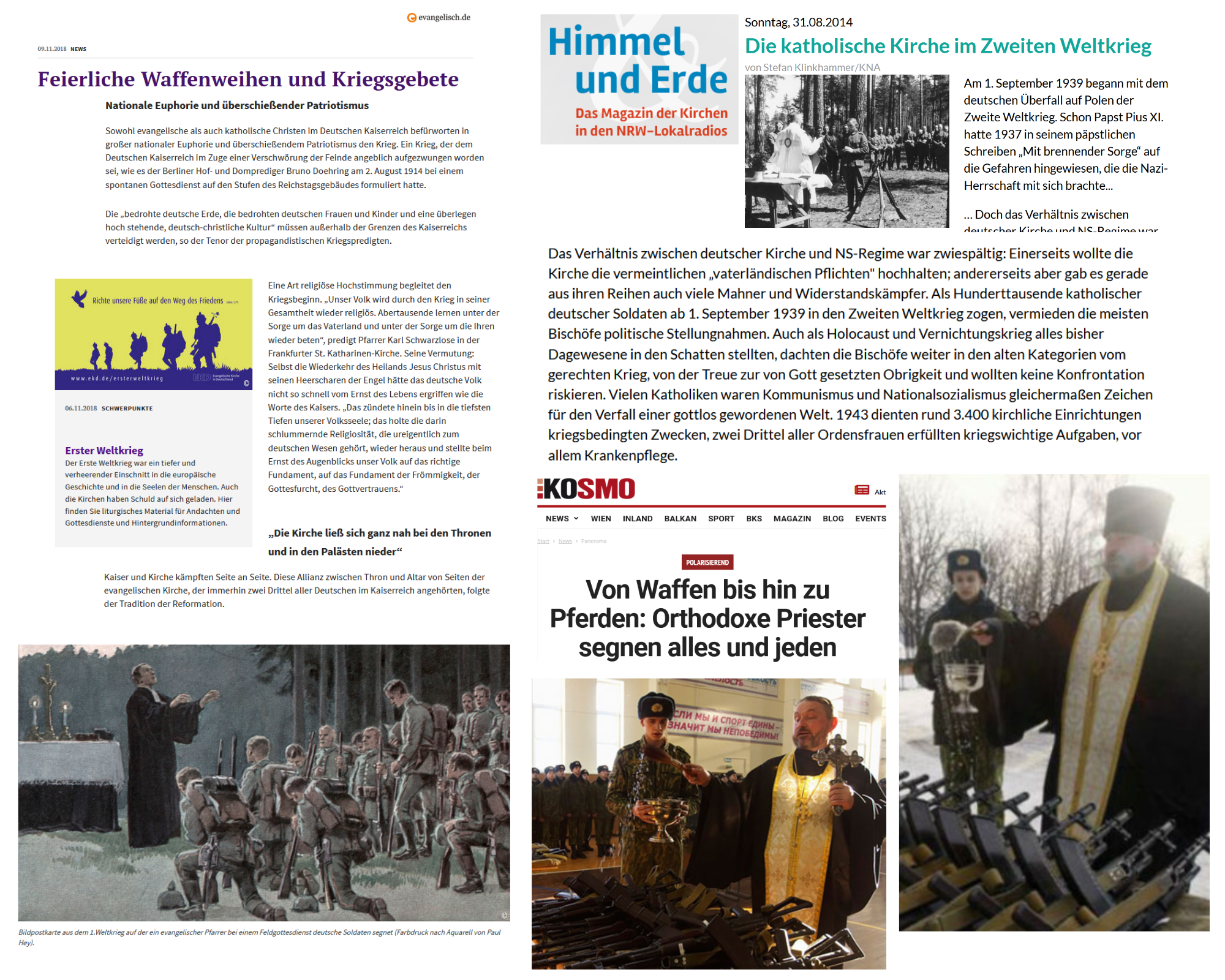 „grundsätzlich friedlich“ also seien Organisierte Glauben, mit ihren Waffenweihen in der Vergangenheit, mit ihren Waffensegnungen bis zum Heute herauf …