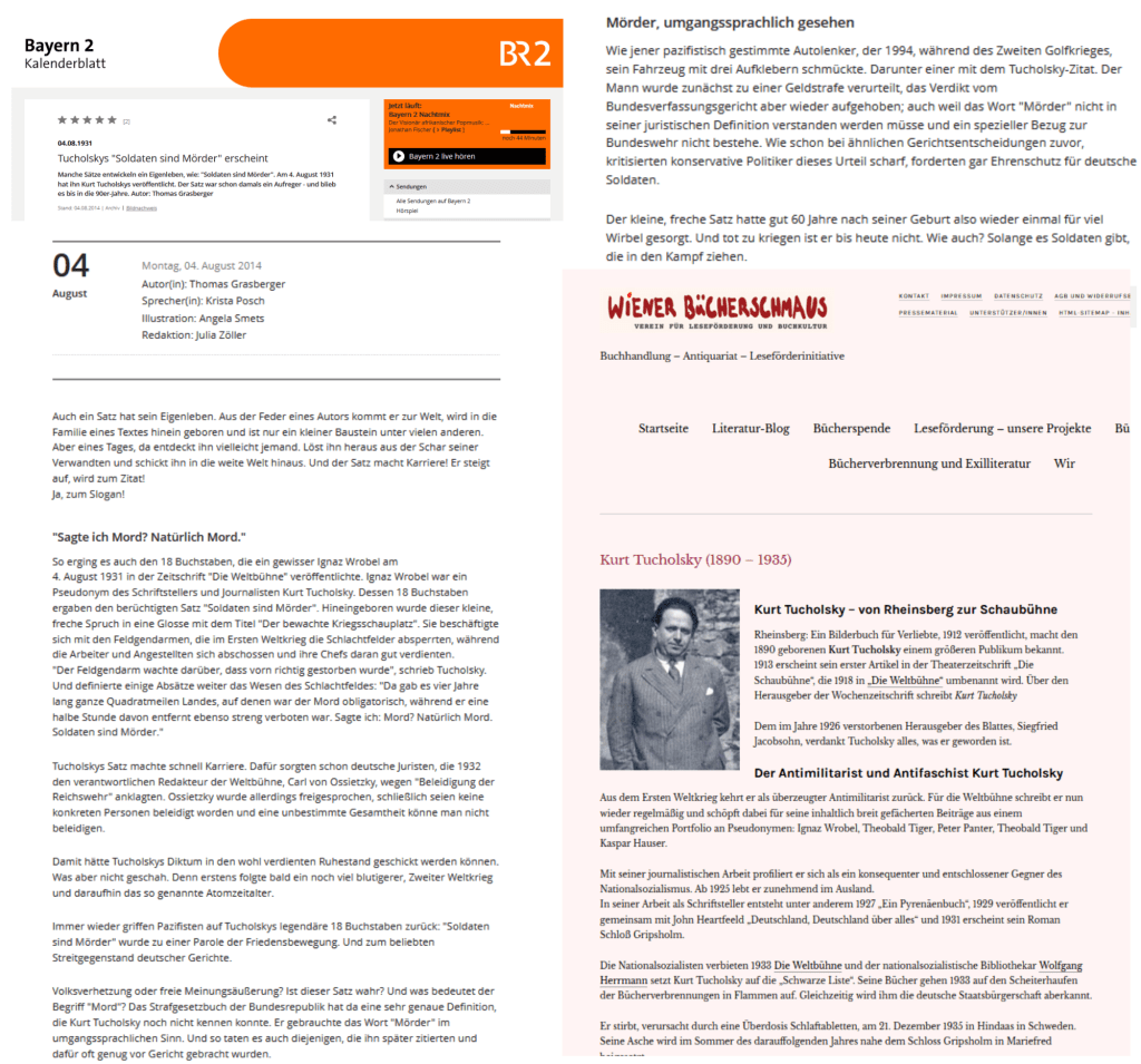 Grundsätzlich friedlich geweiht, gesegnet, der Mord, mit 18 Buchstaben hat Kurt Tucholsky vor neun Jahrzehnten in der „Weltbühne“ dies zusammengefaßt: „Soldaten sind Mörder.“