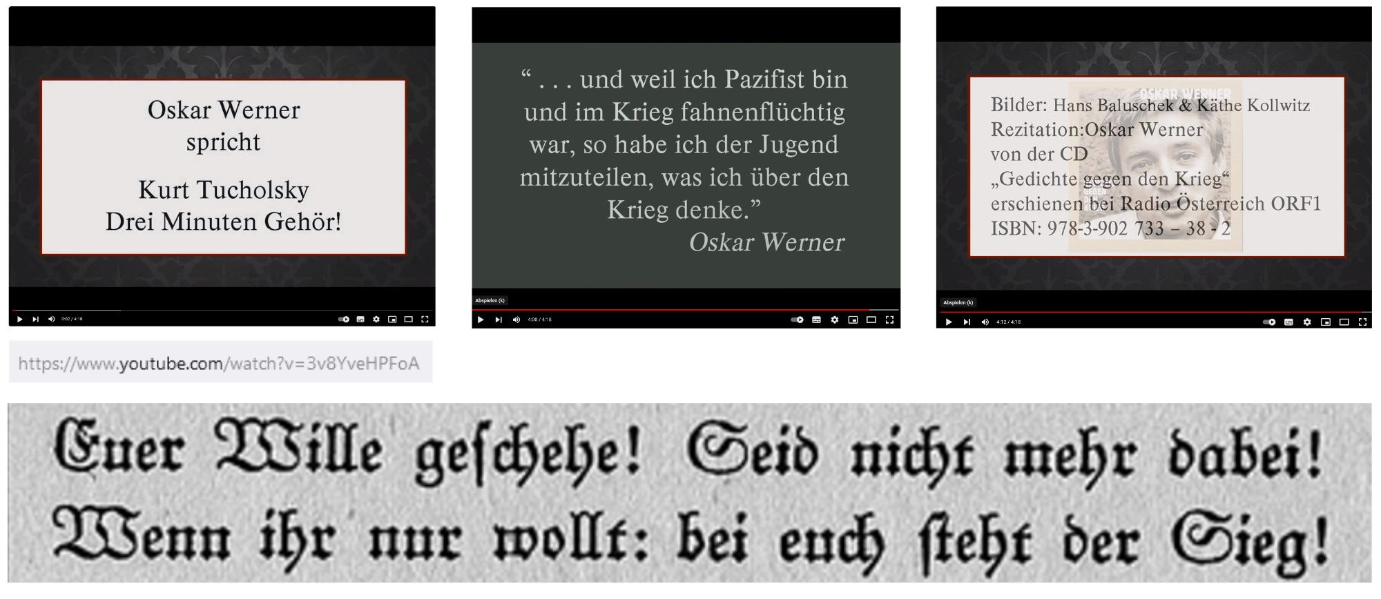 „Drei Minuten Gehör“ von Kurt Tucholsky, geschrieben vor einhundertundzwei Jahren, im Jahr des Herrn ’22, ein Aufruf von Oskar Werner, ja, von einem der „Lieblingsschauspieler“ von einem der „Lautsprecher“, dessen Name M. S.