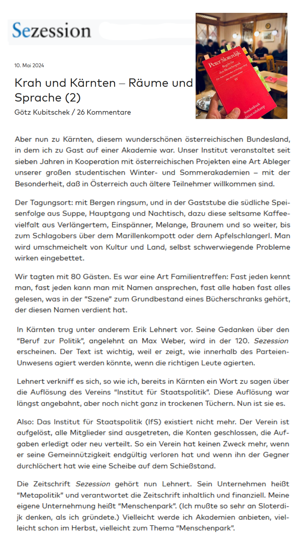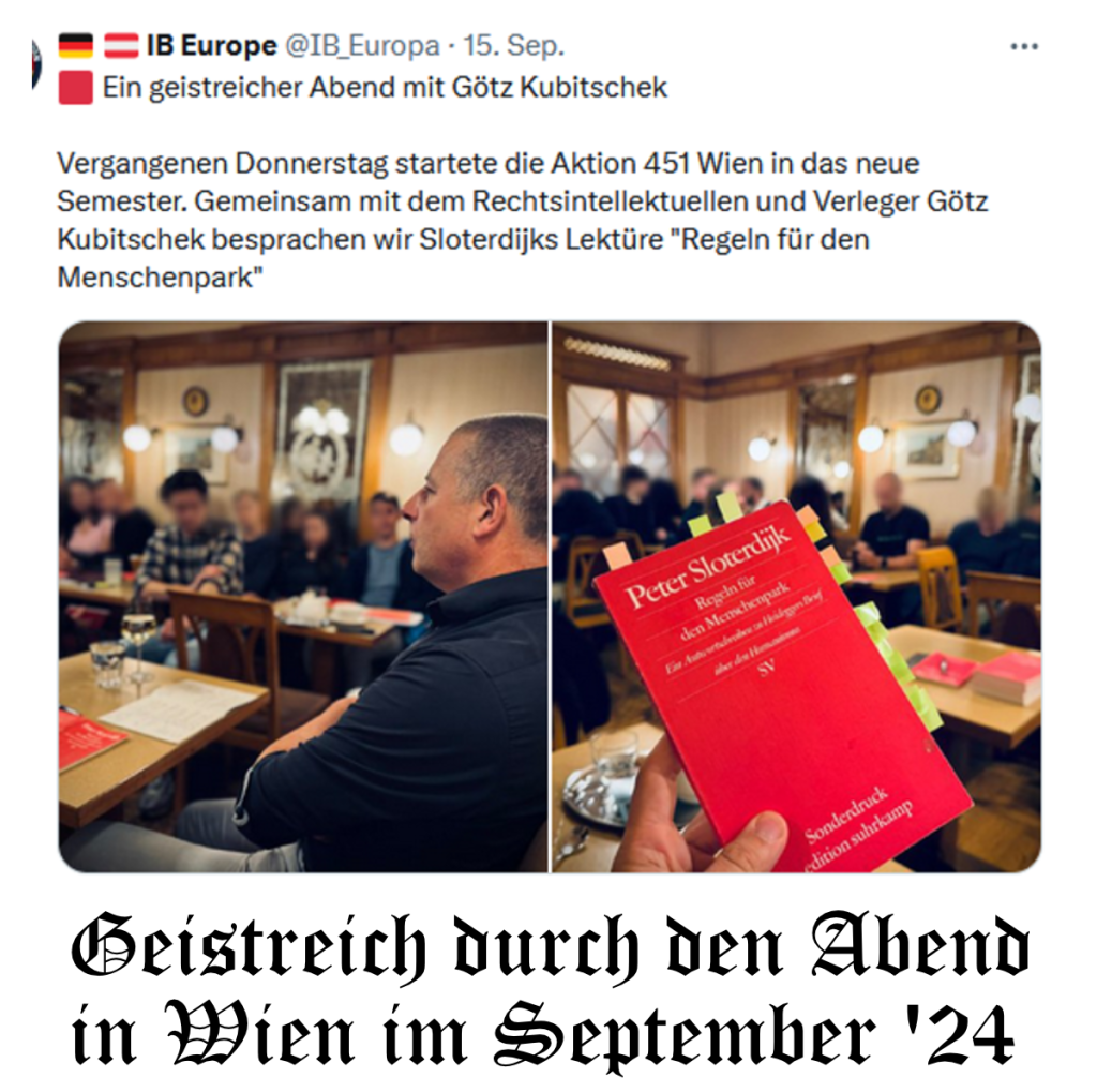 Der „Chef“, so war es vor kurzem zu erfahren, wird Götz Kubitschek in Österreich treu und ehrfürchtig genannt, habe also sein „Institut für Staatspolitik“ aufgegeben, dafür habe er ein weiteres Unternehmen gegründet, und diesem Unternehmen den Namen „Menschenpark“ gegeben,