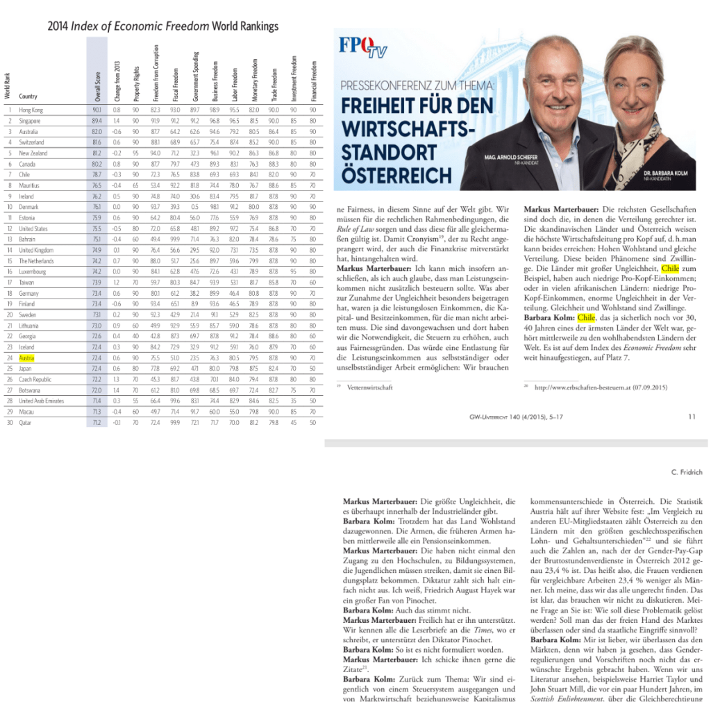 Barbara Kolm: Chile, das ja sicherlich noch vor 30, 40 Jahren eines der ärmsten Länder der Welt war, gehört mittlerweile zu den wohlhabendsten Ländern der Welt. Es ist auf dem Index des Economic Freedom sehr weit hinaufgestiegen, auf Platz 7.