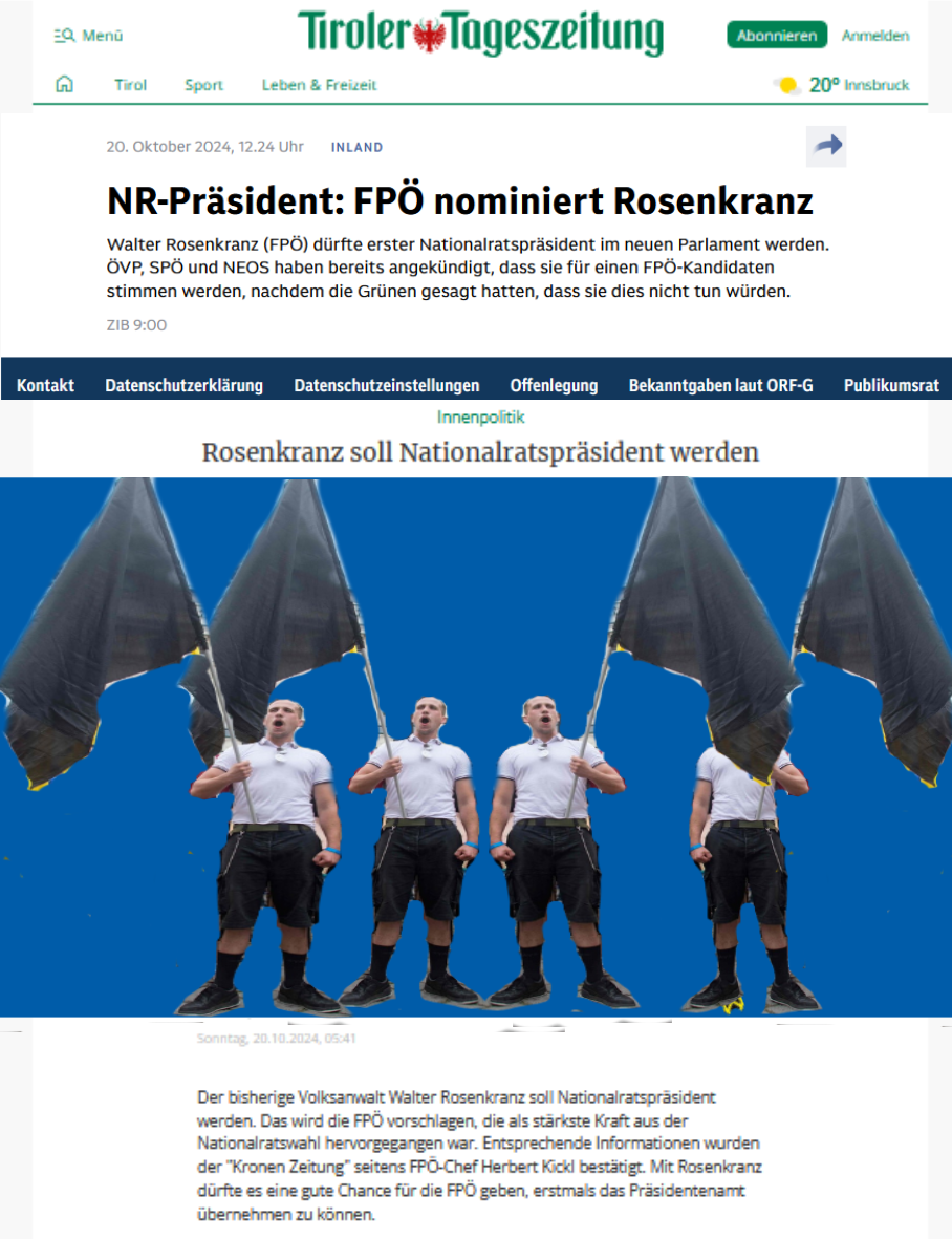 so wird es auf seinem Stuhl im österreichischen Parlament stehen: „Erster Nationalratspräsident“ — Nomininiert dafür von seiner identitären Parlamentspartei, angekündigt von den Parteien ÖVP, SPÖ und NEOS, einen aus der patriotischen —