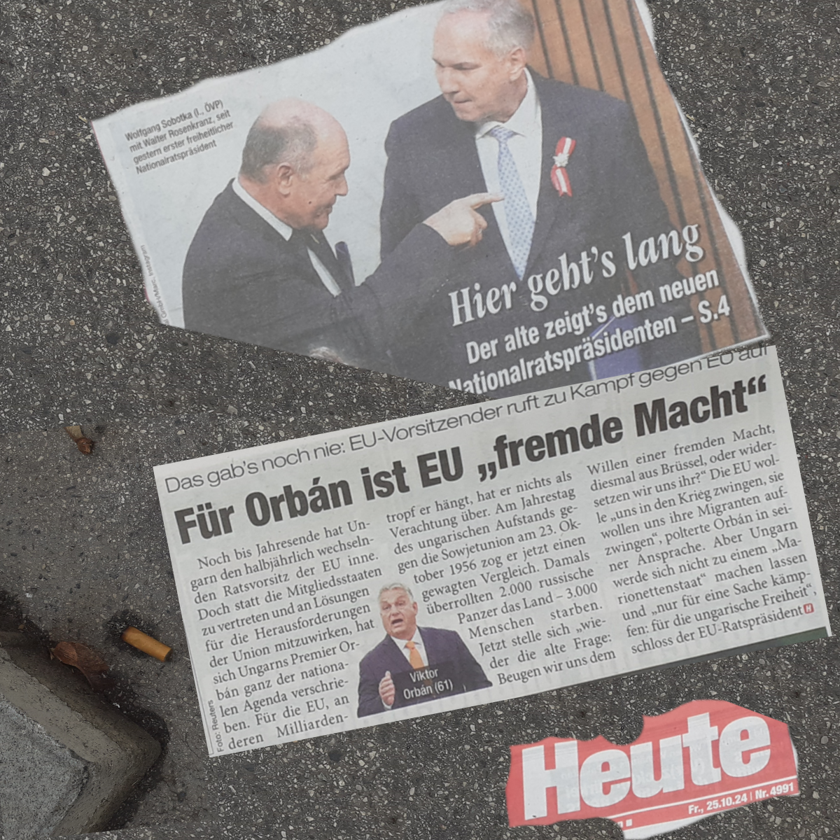 „Usance“ ist kein deutsches Wort. Deshalb wohl ist es für Walter Rosenkranz unumgänglich ein Wort beizufügen, das ihm ein deutsches Wort, aber nicht nur deshalb, „Gewohnheitsrecht“ soll, so wohl sein Ansinnen, allen einreden, es ist Recht, es ist Gesetz, was doch bloß Gepflogenheit, Brauch, Gewohnheit, gewohnheitsmäßiges Verhalten, vor allem im geschäftlichen Bereich … Es könnte auch gesagt werden, „Usancen“ sind Bequemlichkeiten, Faulheiten, Ausreden. Und daß „Usancen“ kein niedergeschriebenes Recht ist, daß ein „Gewohnheitsrecht“ je kein in einem Gesetzesbuch festgeschriebenes Gesetz ist, hat in Bezug auf Politik seine absolute Richtigkeit. Usancen oder Gepflogenheiten oder Bequemlichkeiten, würden, so wie es Walter Rosenkranz als Recht verstehen und verkaufen will, den Stillstand von Politik, das Ende der Politik, die Auslöschung von Politik bedeuten. Usancen also will Walter Rosenkranz wiederbeleben, er meint, wiederbelebt werden müssen, so manches gar eher — An welche er dabei denkt, das hat Walter Rosenkranz nicht gesagt. An diese wird er wohl auch gedacht haben, der Dank wird ihm dazu wohl verpflichten, seinem Bergführer gegenüber, der ihn nun an die Spitze führte, der doch so auf das gewohnheitsmäßige Verhalten baute, das ihn an die Spitze über der, nach seiner Einschätzung wohl, rosenkranzschen Spitze führen hätte sollen …