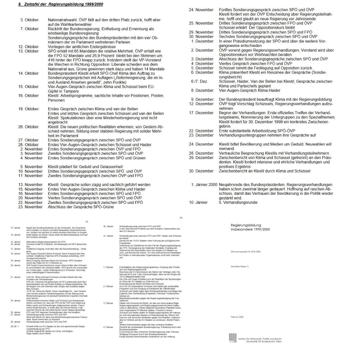 Nach diesen Gesprächen hat Bundespräsident Thomas Klestil Viktor Klima mit der Regierungsbildung beauftragt, das Ergebnis ist bekannt, besonders für den Mann mit Geschichte, es wird natürlich auch Menschen in Österreich geben, denen das Ergebnis nicht bekannt ist, das ist eine Eigenschaft besonders von Männern, die für sich die Beschreibung in Anspruch nehmen dürfen, das zu sein: der Mann ohne Geschichte …