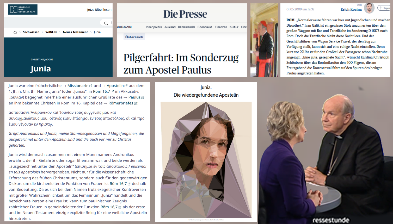 Doch immer noch setzt sich das Unsichtbarmachen von Frauen fort: Schon heute schreiben manche Bibelwissenschaftler gelehrte Aufsätze über Junia und andere Apostelinnen, ohne die Forschungen ihrer Kolleginnen wie Bernadette Brooten zu erwähnen.
