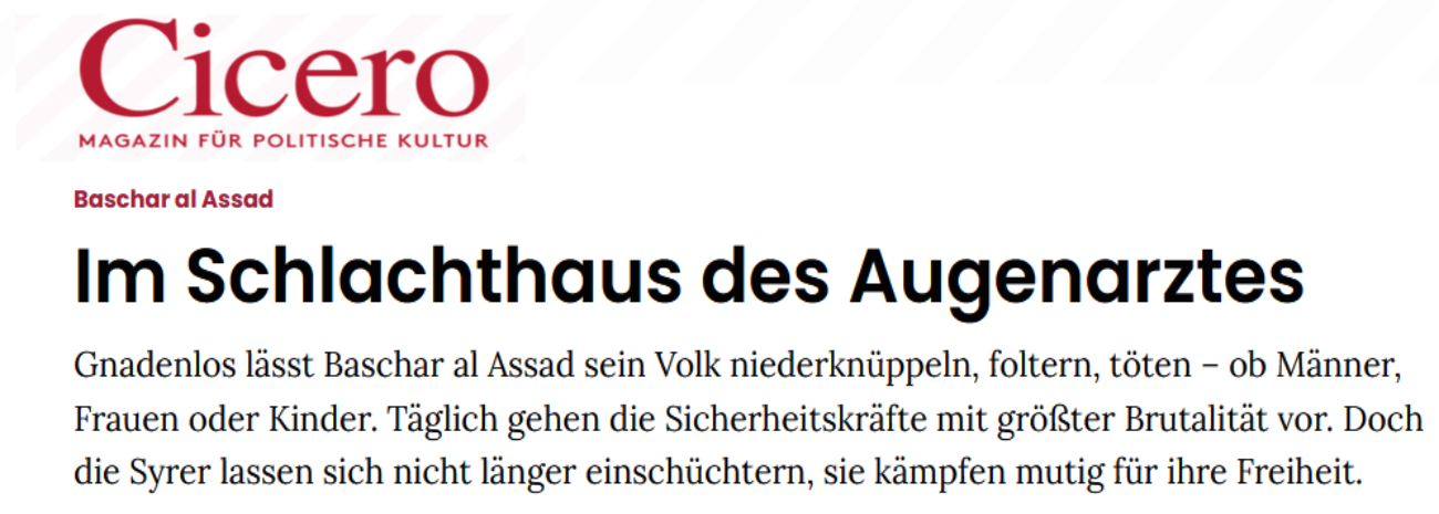 Wie alle Mordenden ist er, Baschar al-Assad, nun einmal geflohen, um sich nicht der Verantwortung für alle seine Verbrechen stellen zu müssen, von Gerichten unbehelligt zu bleiben. Nun soll er in Moskau sein.