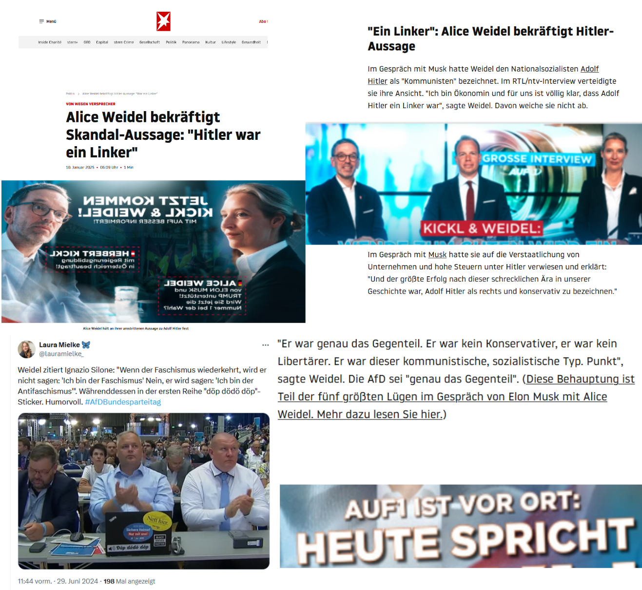 Woher Alice Weidel das mit Nationalsozialismus und Adolf Hitler hat — aus Österreich, aus Österreich. Gesinnungsgemäß wie immer alles abstreitend werden die sie Erziehenden das von sich weisen, sie hätte es …