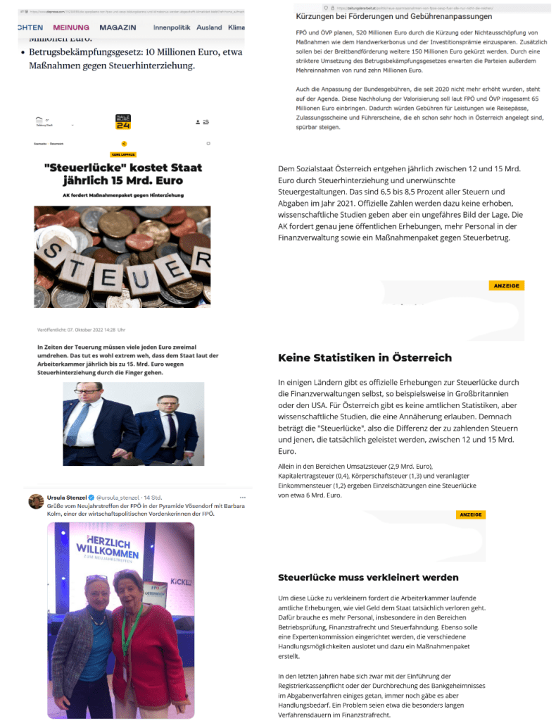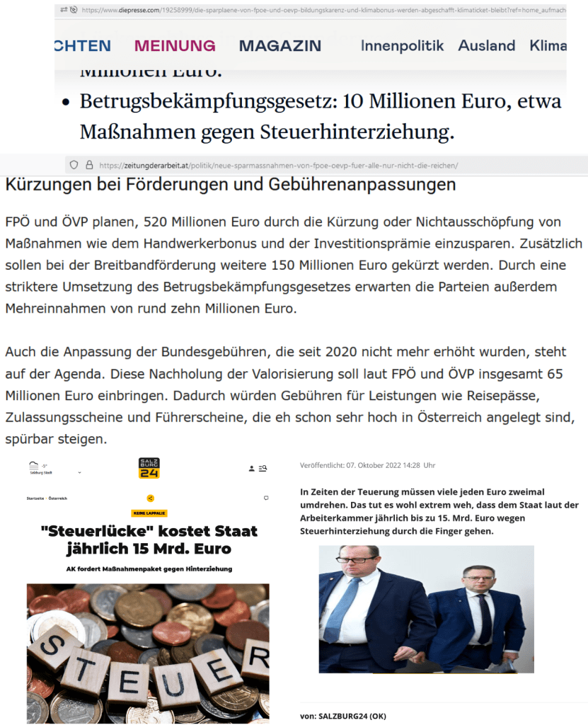 Von diesen dem österreichischen Staat entgangenen Milliarden also zehn Millionen – ein sehr ambitioniertes Einnahmenziel der kommenden Regierung, an der jetzt gebastelt wird.