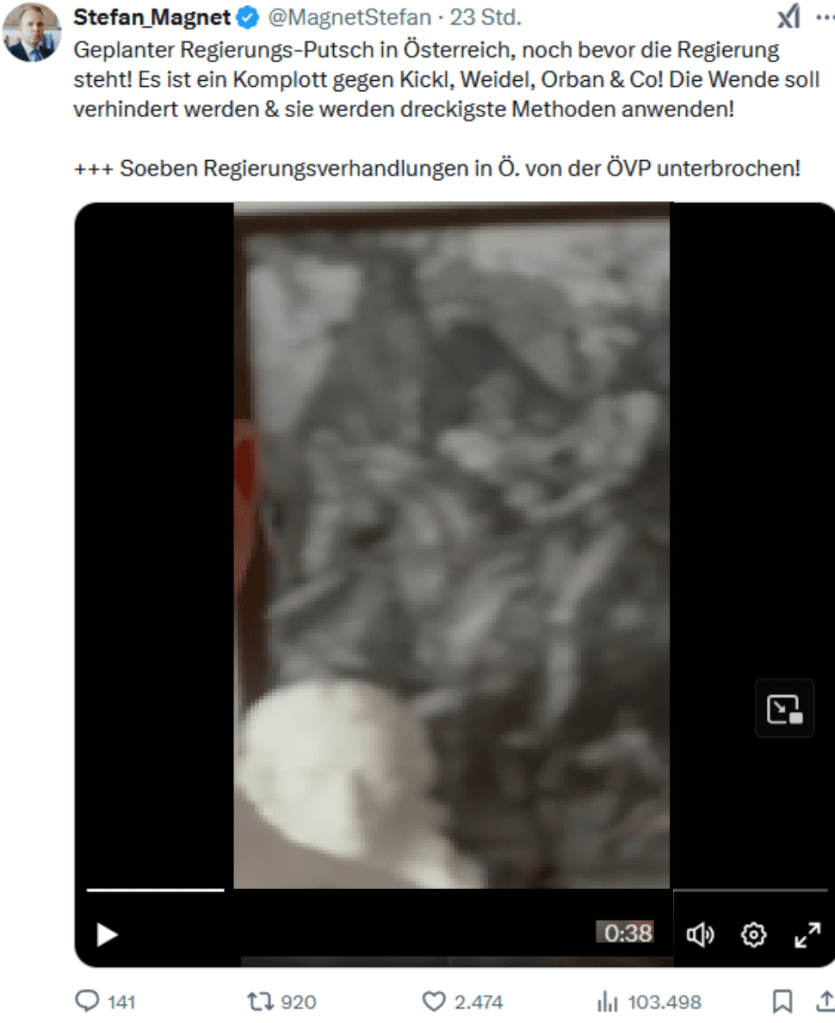Es ist ein Komplott […] Kickl, Weidel, Orban & Co! […] werden dreckigste Methoden anwenden!