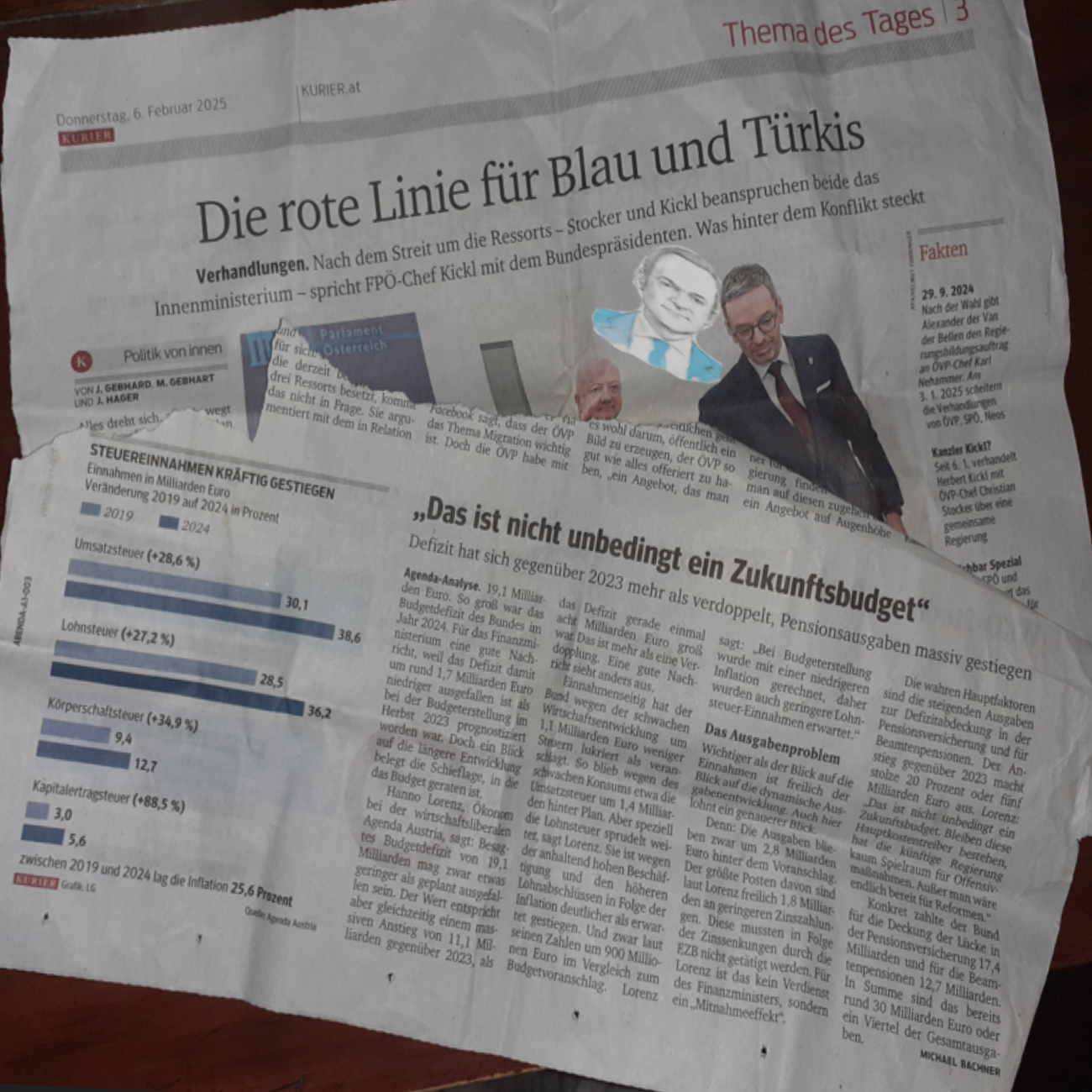 Das schreibt am 6. Februar 2025 Michael Bachner im „Kurier“ unter der Schlagzeile „Das ist nicht unbedingt ein Zukunftsbudget“, die ihm „Hanno Lorenz, Ökonom bei der wirtschaftsliberalen Agenda Austria“ liefert. Artikel werden nicht selten mit dem Ort fettiert eingeleitet, von dem berichtet wird, und auch der Artikel von Michael Bachner wird fettiert eingeleitet: „Agenda Austria“ — geradeso, als wäre „Agenda Austria“ ein Ort wie Wien oder Ried …