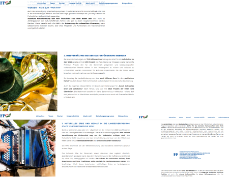 Die „Kulturpolitik“ in der Vorstellung der identitären Partei, wie von dieser auf ihrer Website niedergeschrieben — kurz wie einfach zusammengefaßt: der Steiermark bleibt nun nicht erspart, was Österreich erspart bleibt,