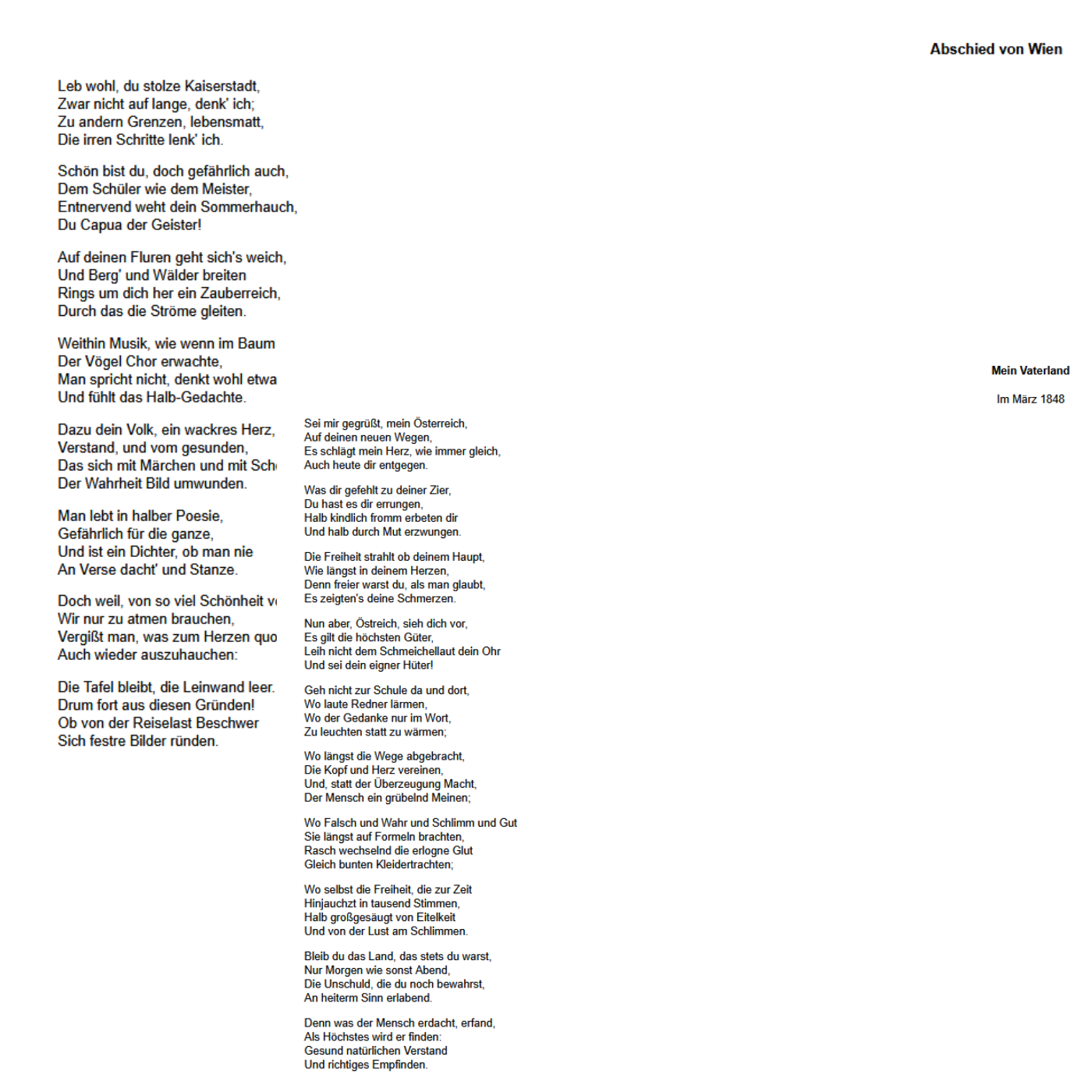 So endet „Arbeit und Essen“ vom 12. Juli 1945, mit dem Vers von Franz Grillparzer, der in „Abschied von Wien“ ein wenig anders lautet: