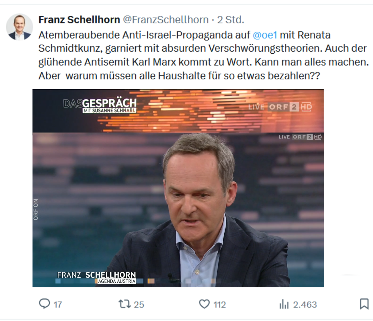 Atemberaubende Anti-Israel-Propaganda auf @oe1 mit Renata Schmidtkunz, garniert mit absurden Verschwörungstheorien. Auch der glühende Antisemit Karl Marx kommt zu Wort. Kann man alles machen. Aber warum müssen alle Haushalte für so etwas bezahlen??