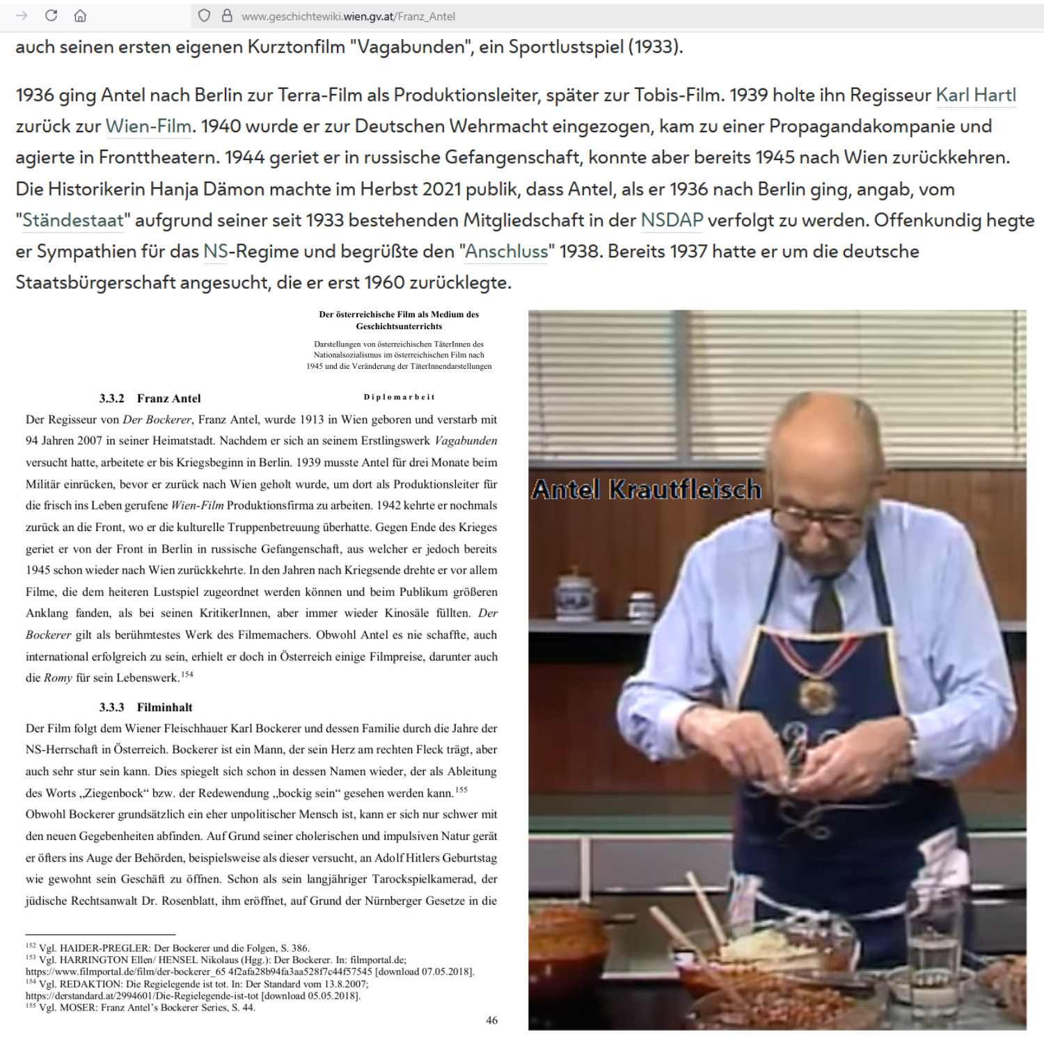 Die biographischen Angaben zu Franz Antel in dieser Diplomarbeit, nun, Franz Antel hätten diese wohl gefallen.