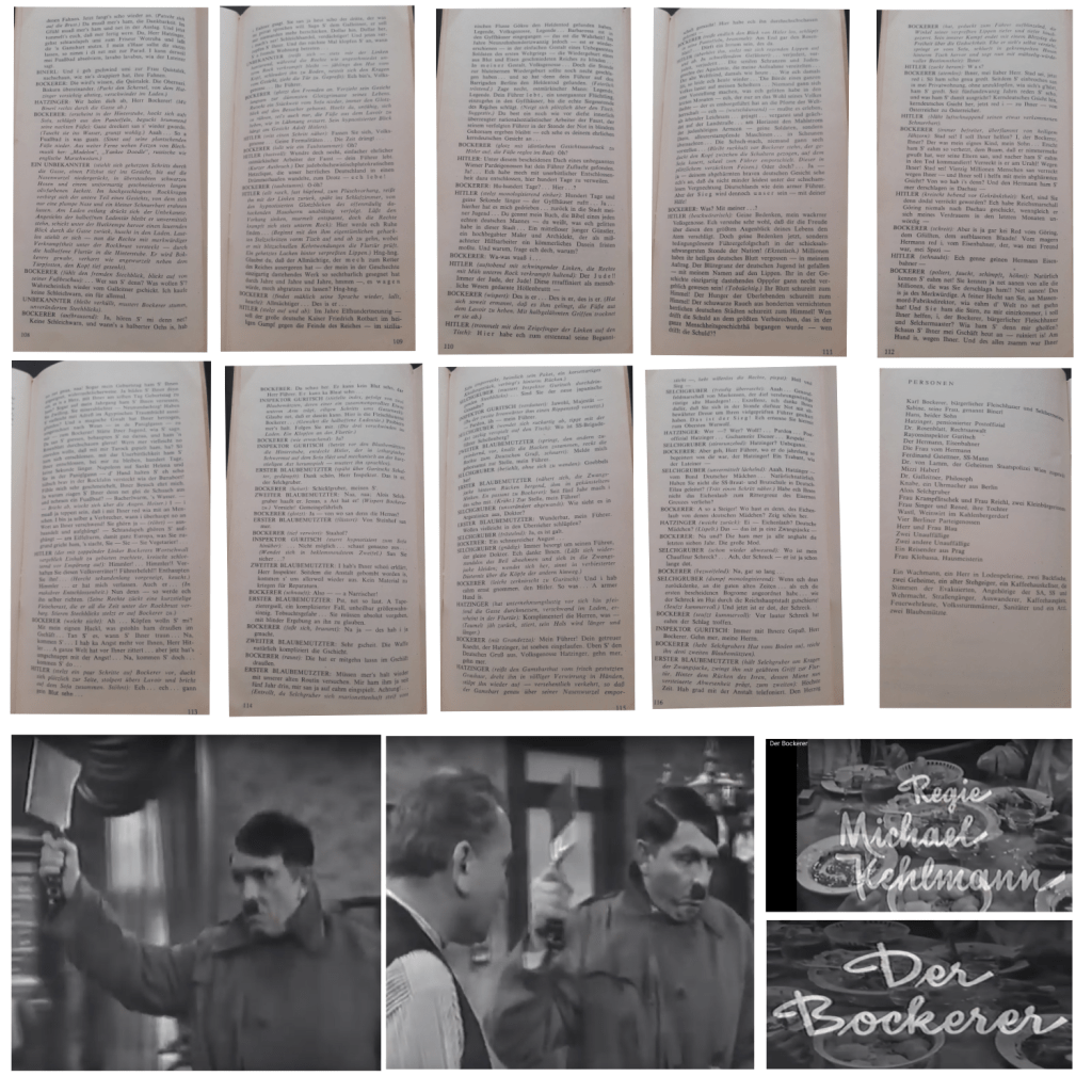 Die Werktreue von Michael Kehlmann, um ein Beispiel dafür noch anzuführen, auch in der Szene, in der Alois Selchgruber in der Wohnung von Karl Bockerer auftaucht, in der Karl Bockerer Hitler als Alois Selchgruber, den er einen „Massenmord-Fabriksdirektor nennnt, u. v. a. m. vorhält: