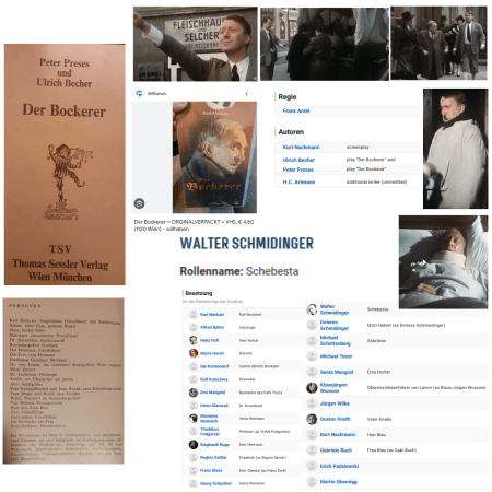 Nebenher ist doch auch zur Namensverwendung im antelschen Bockerer zu bemerken: der Sohn von Karl Bockerer wird von Franz Antel und seinen Drehbuchschreibenden lieblich „Hansi“ genannt, im Stück von Preses und Becher heißt der Sohn „Hans“. Freilich kann gesagt werden, hier halten sich Franz Antel und seine Drehbuchschreibenden an Preses und Becher: die Eltern rufen ihren Sohn selbstverständlich „Hansi“. Aber der Hans im Stück von Becher und Preses ist kein Hansi, und in einer Szene mit seinem Vater ist das besonders deutlich: