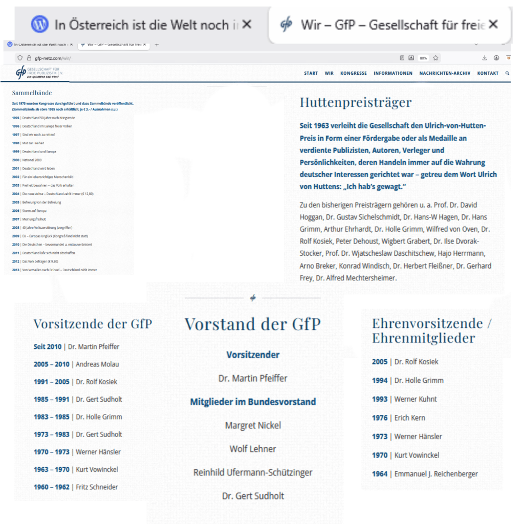 Wird zu seiner Verteidigung vorgebracht worden sein, daß er Vorsitzender der „Gesellschaft der freien Publizistik“, und das seit 2010, darein ein Nachfolger von so ehrenwerten Vorgängern wie Rolf Kosiek, der ein Ehrenvorsitzender dieser ehrenwerten Gesellschaft mit