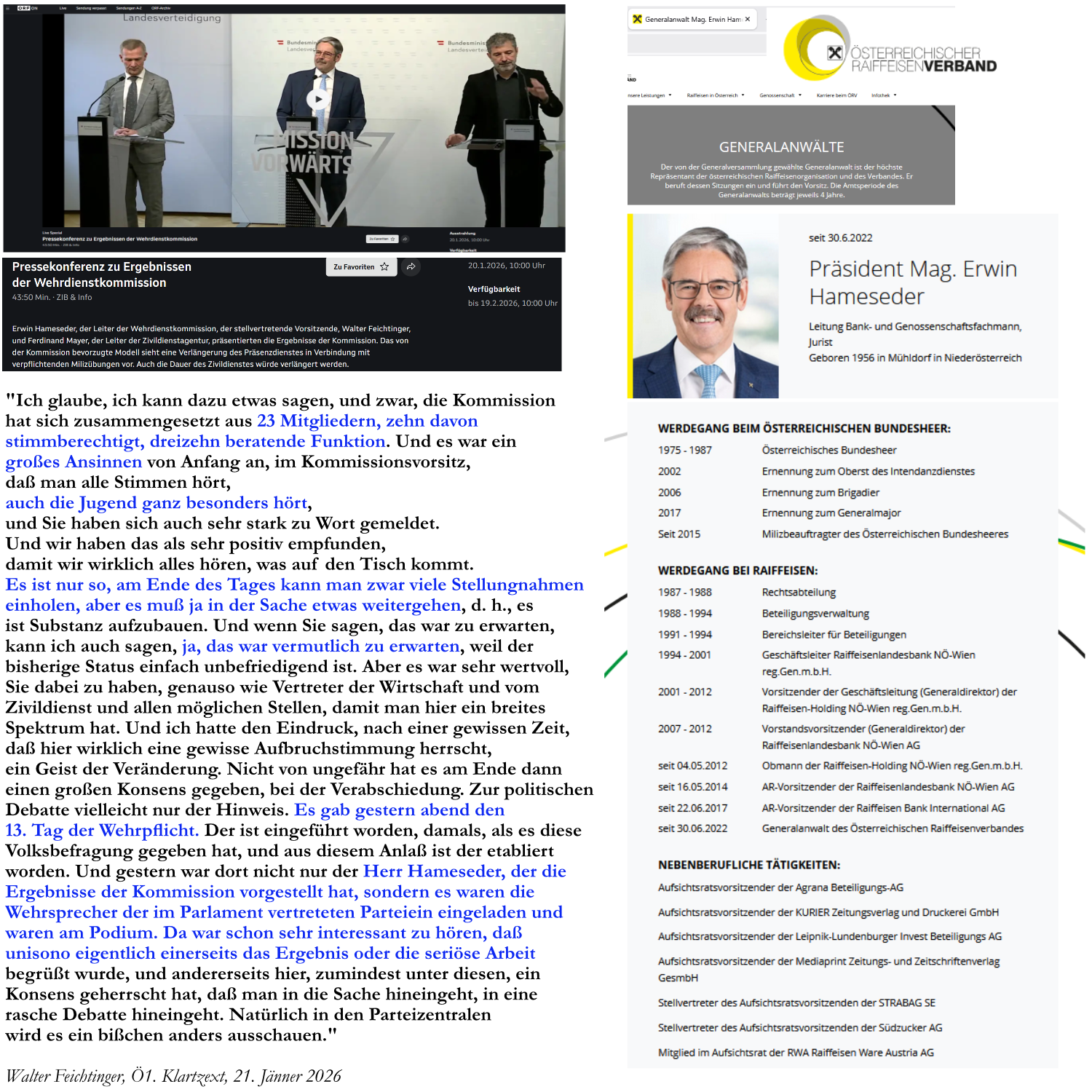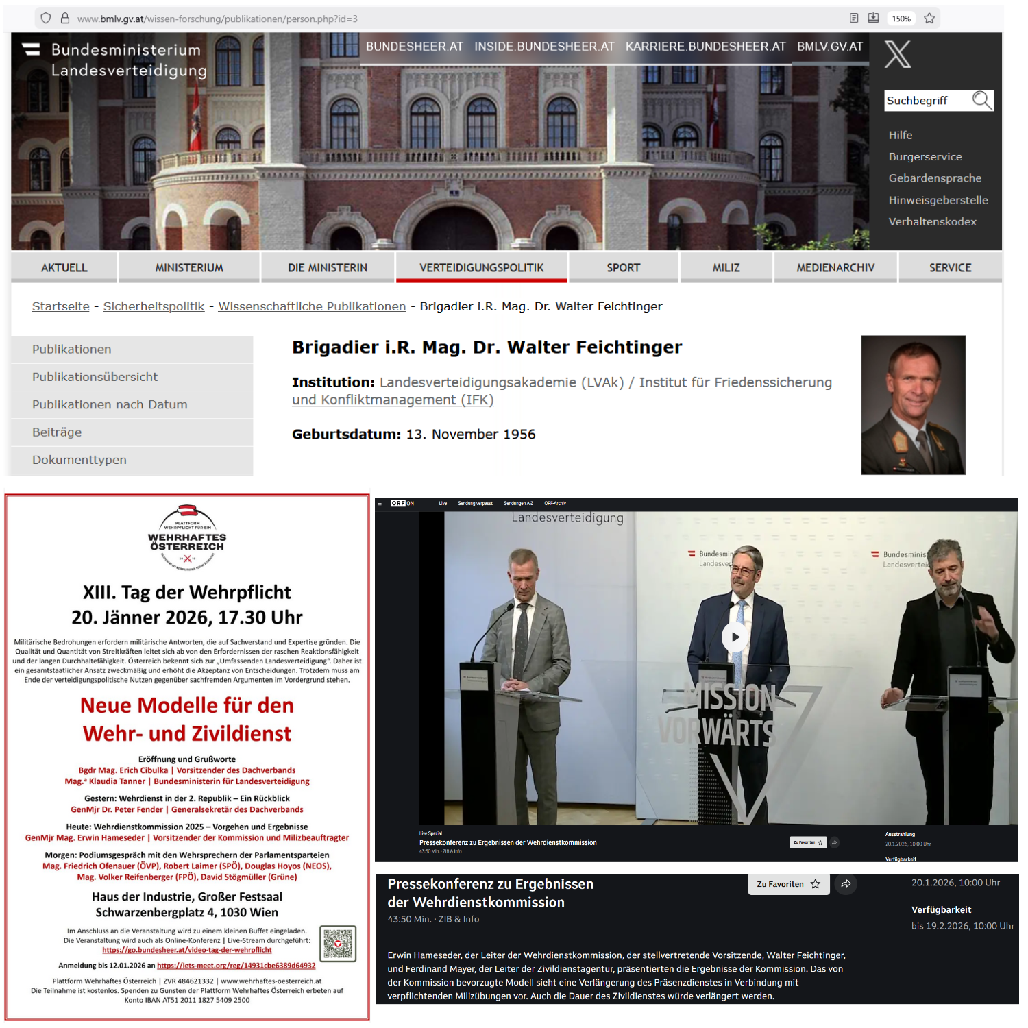 In dieser Sendung auf „Österreich 1“ wurde er vorgestellt als „Militärexperte und Mitglied der Wehrdienstkommission“ —
