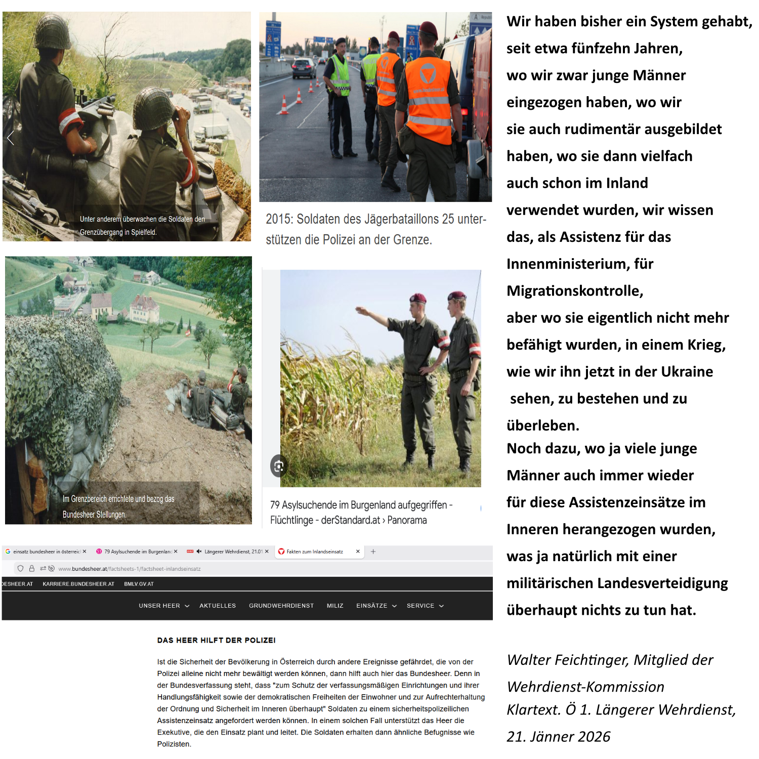 Walter Feichtinger, „Brigadier i. R.“, also ein nicht mehr aktiver Militär, ein Pensionist, sagte in dieser Sendung: