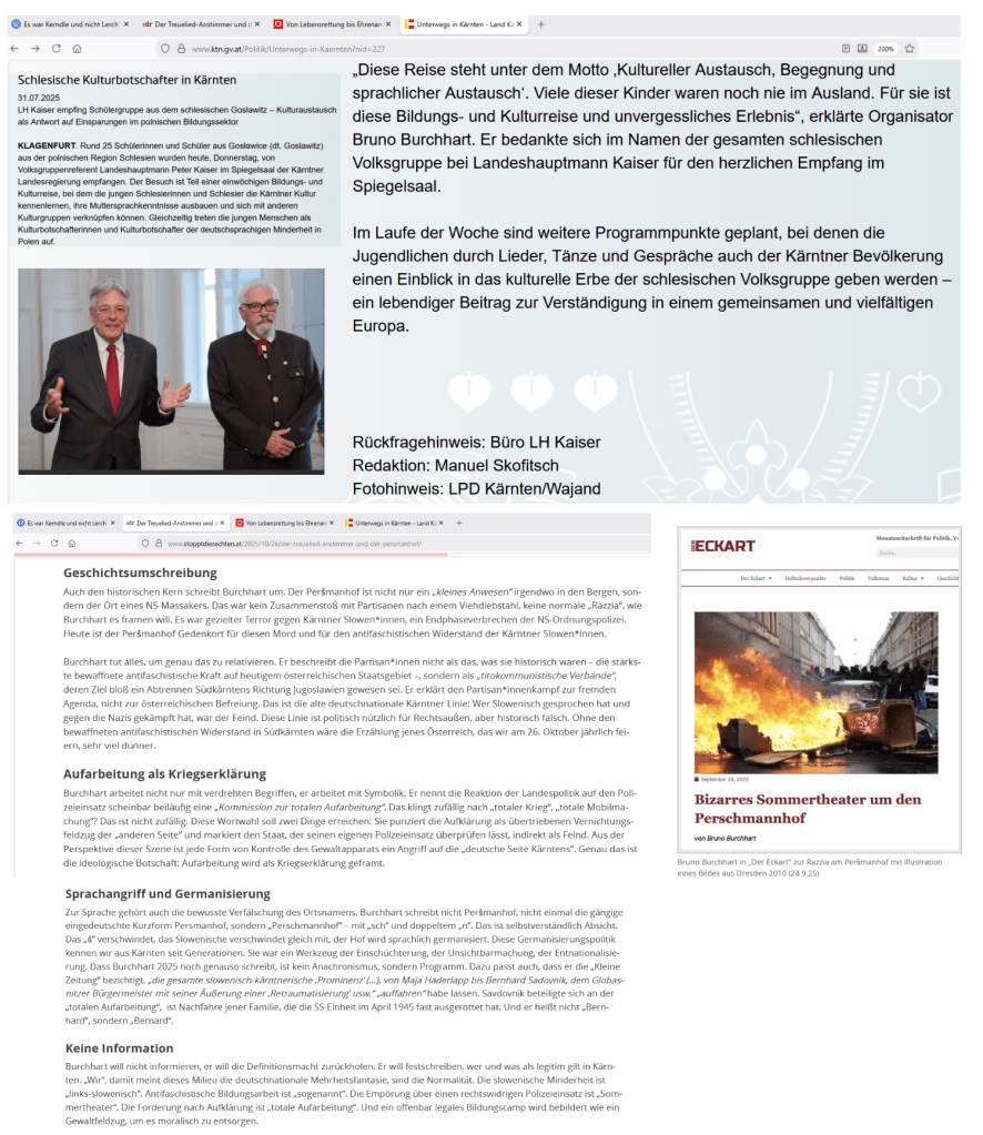 „Der braune Fleck – Das bekannteste Kriegerdenkmal in Kärnten hat eine dunkle Vergangenheit. Bis heute hängen dort Tafeln aus der Nazi-Zeit“ zu lesen war, in diesem Artikel er selbst erwähnt wurde, ein weiteres Mal sich als ausgezeichnet …