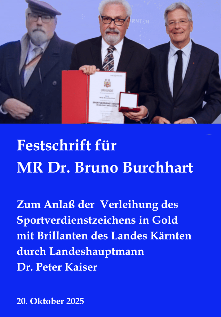 Wenn ein Mensch wie MR Dr. Bruno Burchhart derart rege ist, und das auch noch in einem seinem recht hohen Alter, dann verdient er sich redlich ein Ehrenzeichen in Gold mit Brillanten, für solch eine Regheit ist das Sportverdienstzeichen des Landes Kärnten, überreicht durch den Landeshauptmann am 20. Oktober 2025, die für ihn rechte Auszeichnung, denn, was dieser Mann sich leistet, ist wahrlich sportlich, sportlich, sportlich …