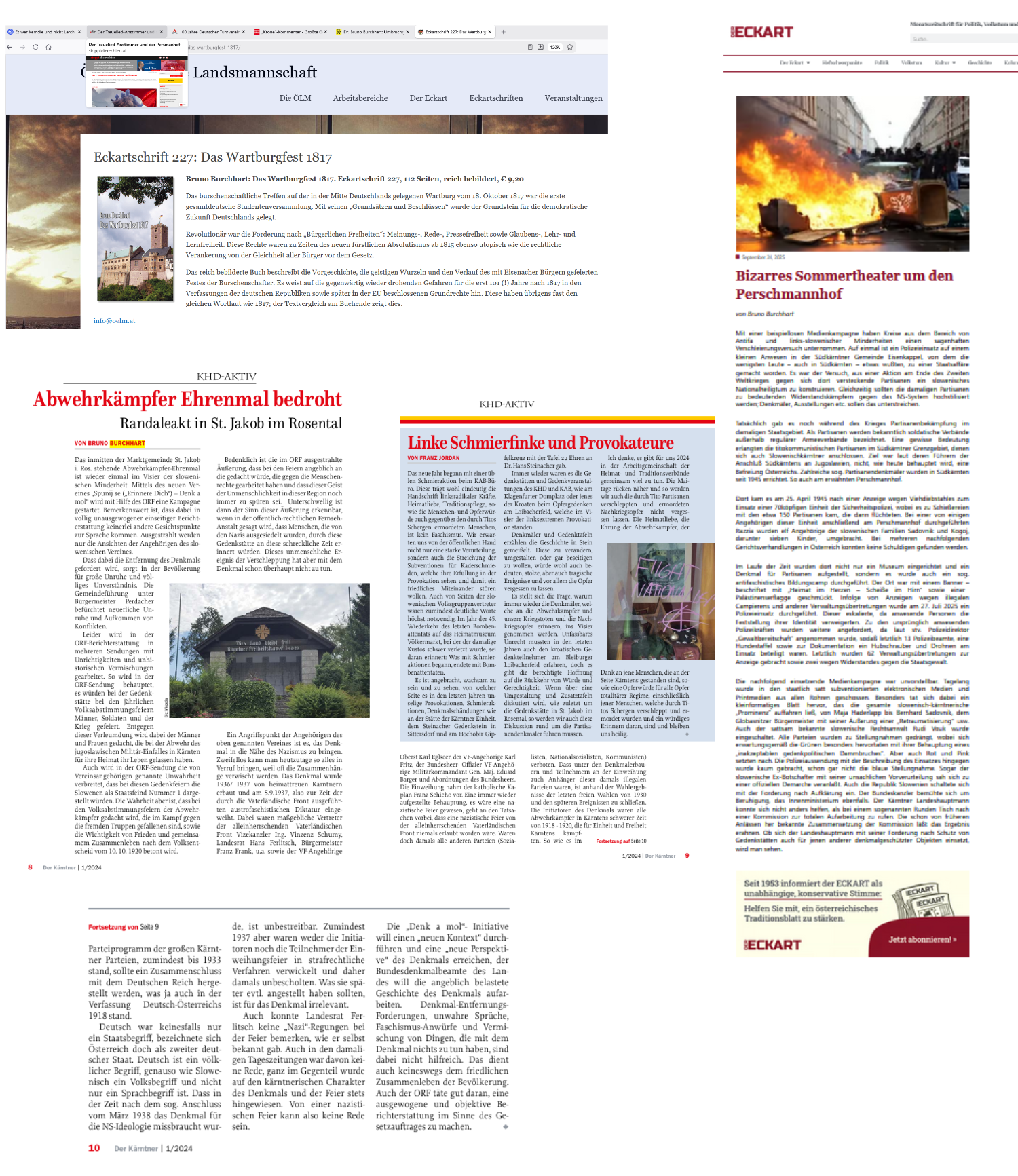 „Der braune Fleck – Das bekannteste Kriegerdenkmal in Kärnten hat eine dunkle Vergangenheit. Bis heute hängen dort Tafeln aus der Nazi-Zeit“ zu lesen war, in diesem Artikel er selbst erwähnt wurde, ein weiteres Mal sich als ausgezeichnet …