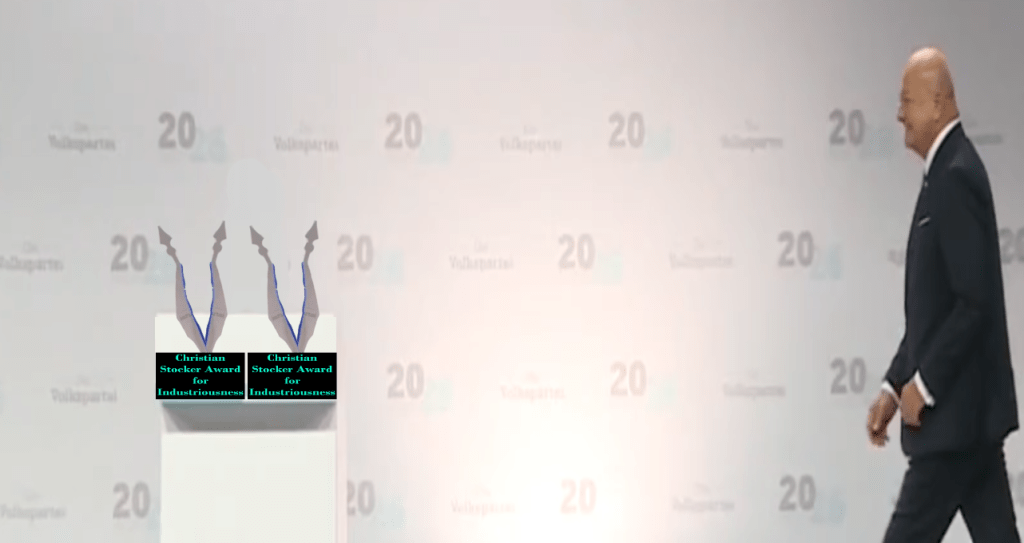 So viel „Arbeit und Fleiß“ sollte nicht nur durch keine von ihm angesprochenen Steuern allein belohnt, für so viel „Arbeit und Fleiß“ muß eine eigene Auszeichnung für die Verdienten von „Arbeit und Fleiß“ geschaffen werden, die es verdient, den Namen jenes Mannes zu tragen, der das so klar erkennt und klar benennt, „daß man sich durch Arbeit und Fleiß etwas schaffen kann“, so eine Auszeichnung verdient den Namen Christian Stocker —