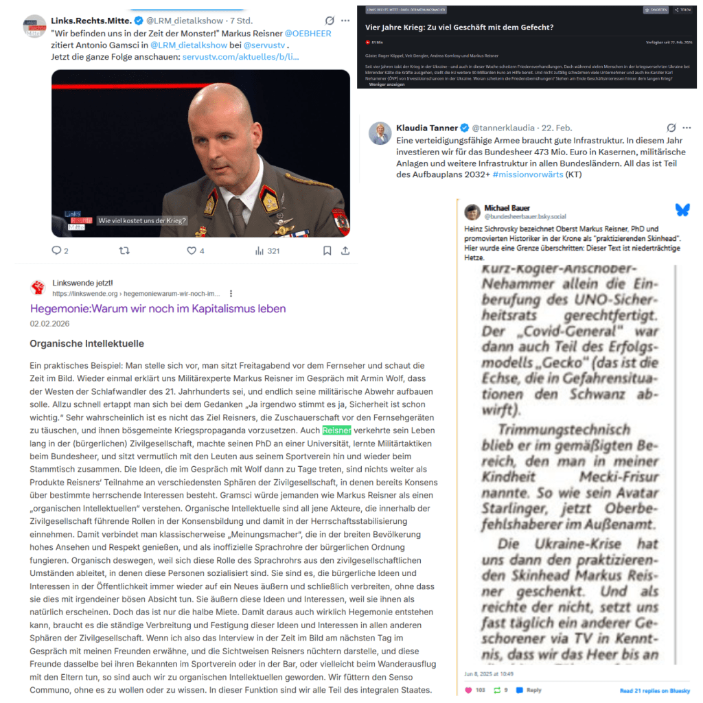 Wie könnte die Funktion von Markus Reisner verstanden werden? Dazu gibt es eine Überlegung, als welche Antonio Gramsci sie verstanden hätte, er hätte, so die Überlegung, Markus Reisner als einen „organischen Intellektuellen“ …