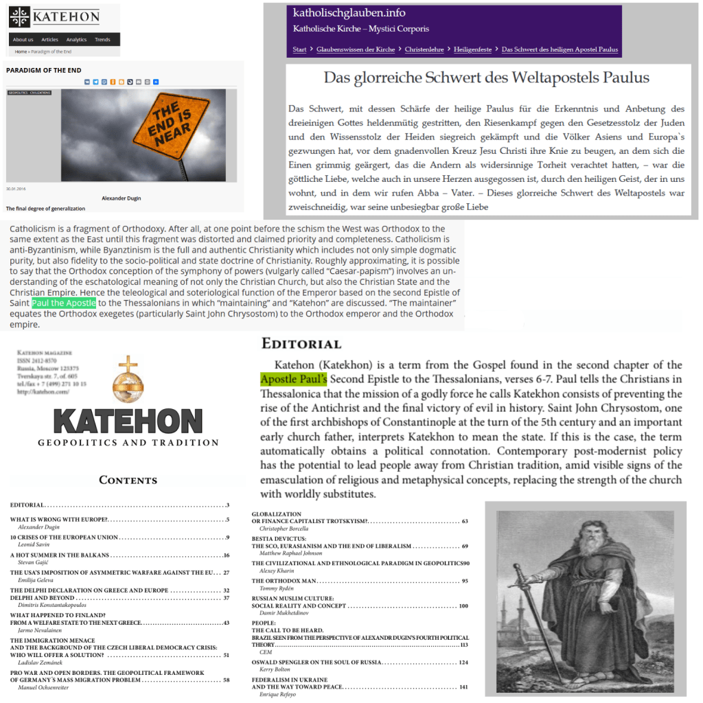 Es kann für Alexander Dugin, Peter Thiel u. v. a. m. doch keinen anderen Idealtypischen geben als Apostel Paulus mit seinem „glorreichen Schwert“ …