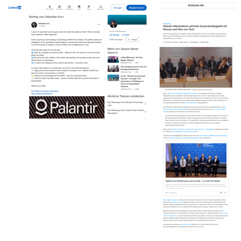 Eine hochrangige Palantir-Managerin nahm ausgerechnet am Gipfel zur digitalen Souveränität teil. Palantir gilt als Paradebeispiel für die Gefahren digitaler Abhängigkeiten. Das Bundeskanzleramt wusste offenbar nichts davon.
