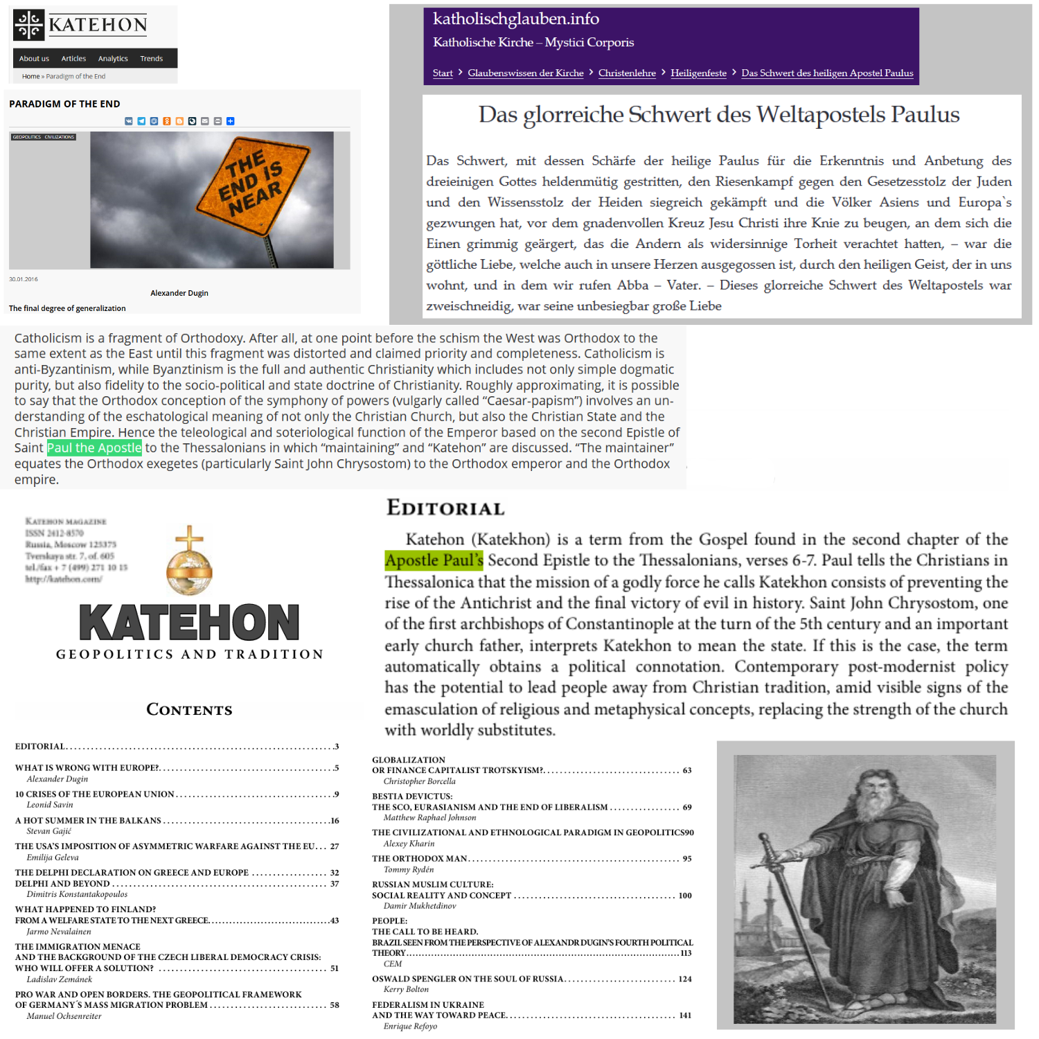 Katehon. Geopolitics and Tradition. Editorial. Alexander Dugin. Katehon Magazine. ISSN 2412-8570. Autumn 2015.