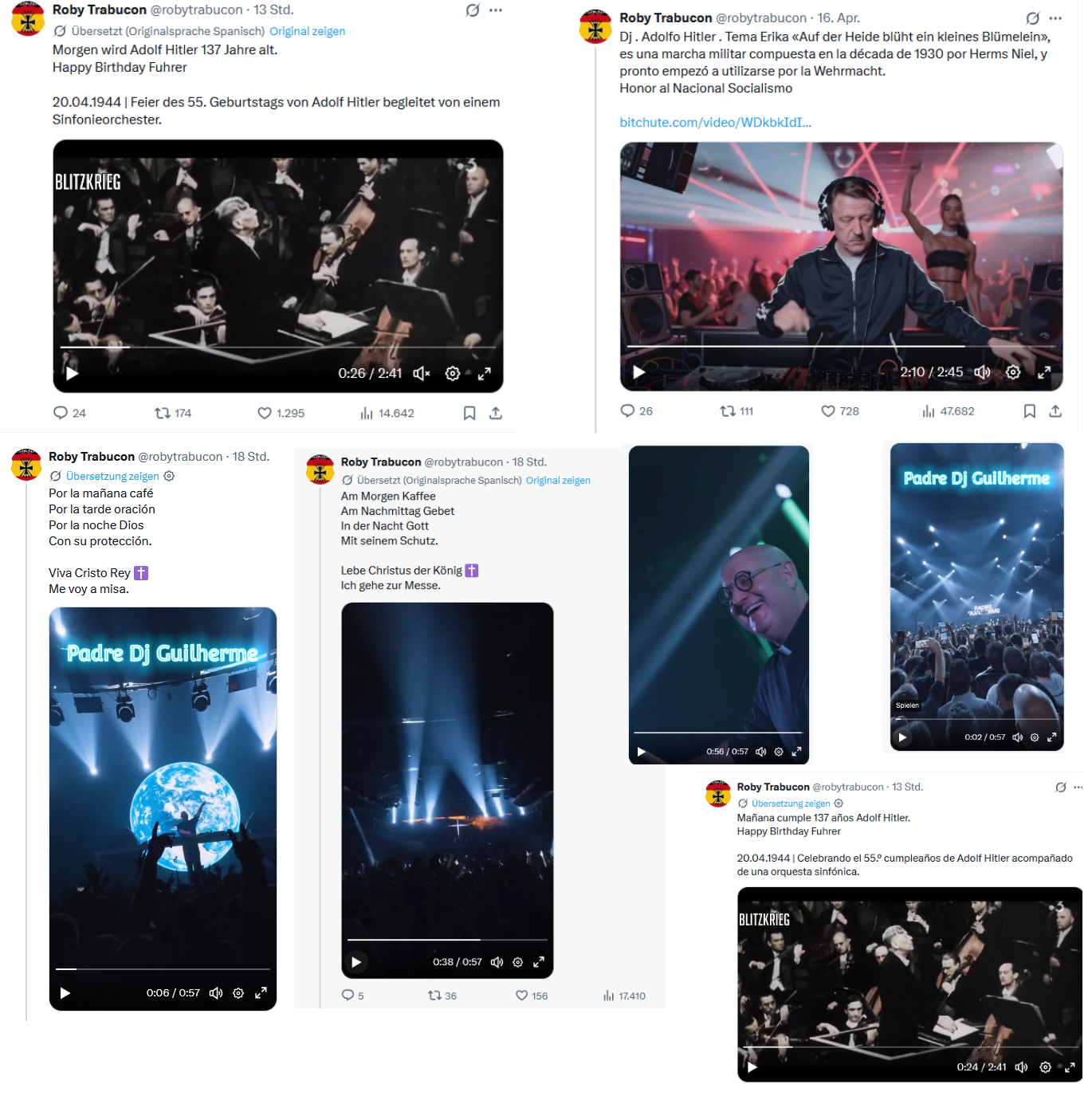 Und dazu von Roy Trabucon auch am 19. April 2026 ebenfalls mit einem Video aufgepeppt, zu sehen: eine Masse in einer Messe, ein Padre, Lichtorgel, Entzückung: