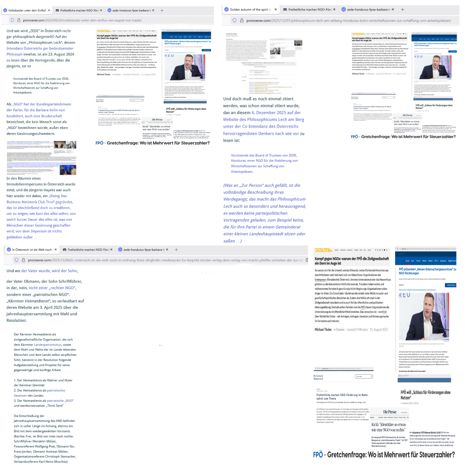 Es wurde darauf vergessen, zu erzählen, das noch zu erzählen, von der Verlinkung auf der Website der „FPÖ“ zum grazerischen Magazin „Freilich“, also von der direkten freiheitlichen Übernahme des Berichteten von „Freilich“, von der freiheitlichen Aufforderung zum „Weiterlesen“ auf Freilich, also, was die FPÖ, im konkreten Fall ihren Nationalratspräsidenten, betrifft, ist nicht von der FPÖ selbst zu erfahren, sondern von Freilich.