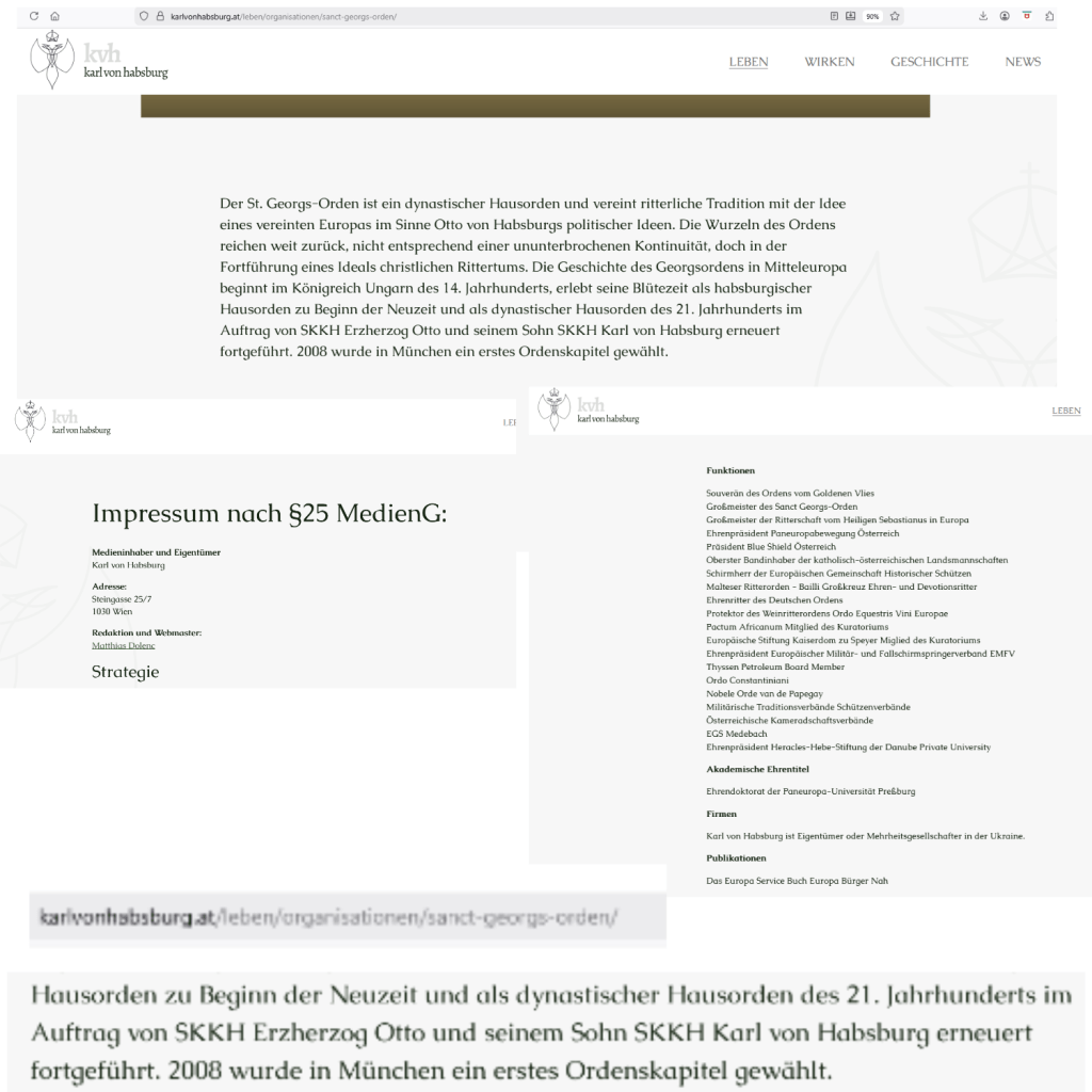 Alle anderen Orden und Ehrenzeichen, mögen sie auch durch irreführende Bezeichnungen den Anschein erwecken, in Zusammenhang mit dem Haus Österreich oder der Familie Habsburg-Lothringen zu stehen, sind lediglich als Dekorationen im Sinne von Verkleidungen zu sehen und dürfen nicht als Orden des Hauses Österreich, Habsburg-Lothringen etc. bezeichnet werden.“