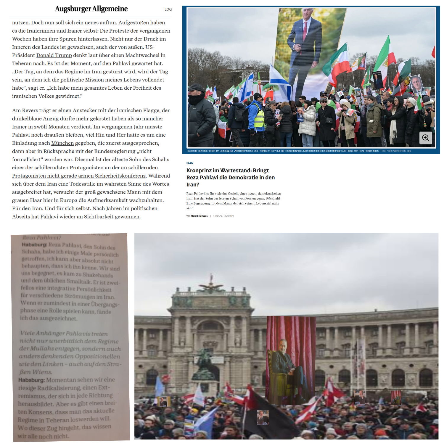 Ja, „auch auf den Straßen Wiens“ wird demonstriert, wer denn der bessere Demokrat ist, etwa „Anhänger Pahlavis, der für „SKKH Karl“ „zweifellos eine integrative Persönlichkeit“ —