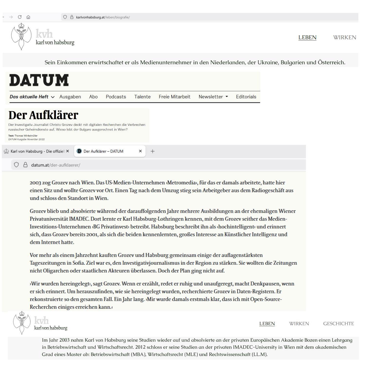 Ein Blick auf die Website von Karl Habsburg hätte genügt, um ihn zu fragen, weshalb er sich selbst nach wie vor, am 22. März 2026 wieder einmal gelesen, als „SKKH Karl von Habsburg“ bezeichnet, stattdessen aber fragen Nina Brnada, Angelika Hager in der „Profil“-Ausgabe 12 vom 21. März 2026 ob